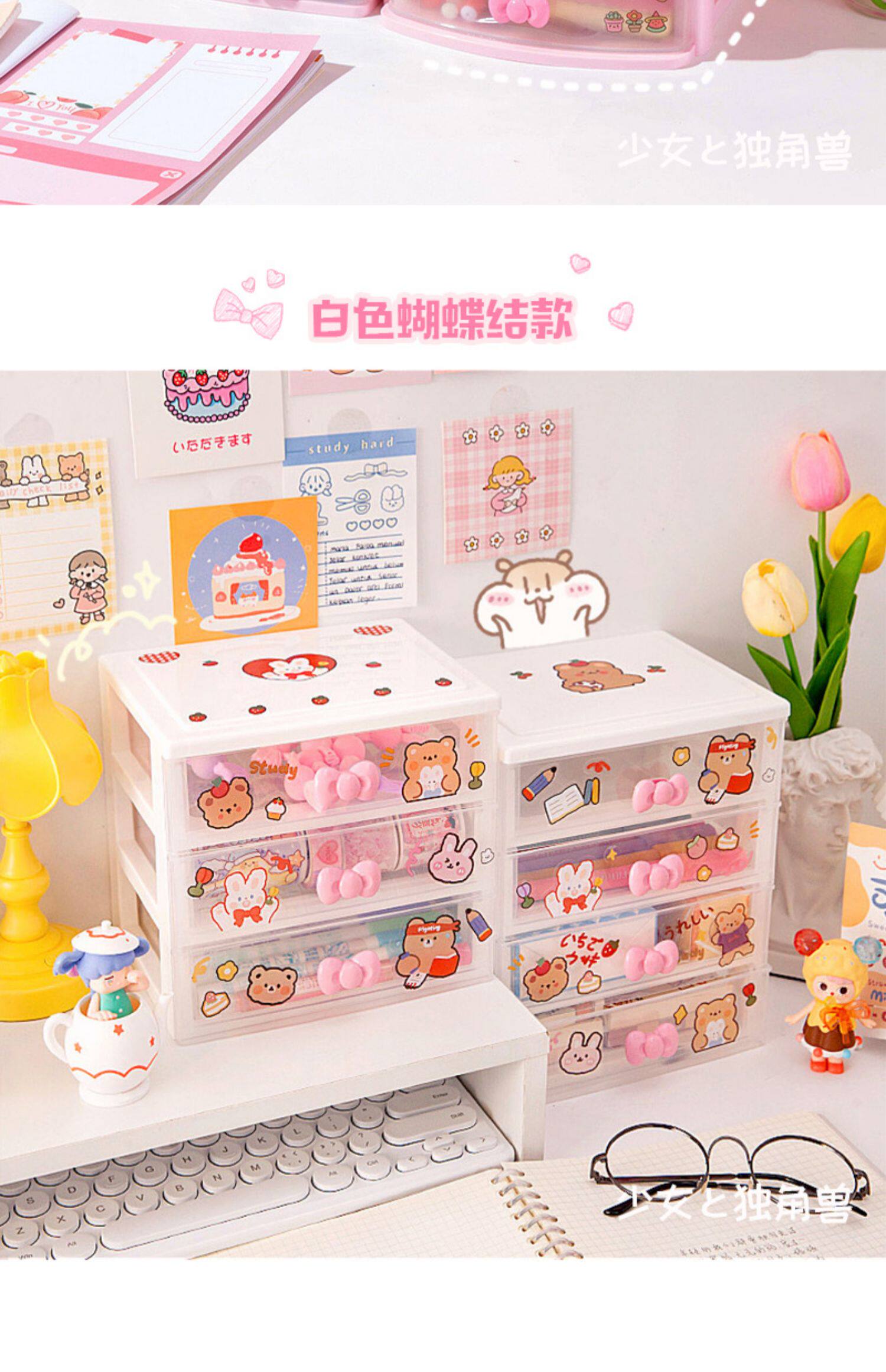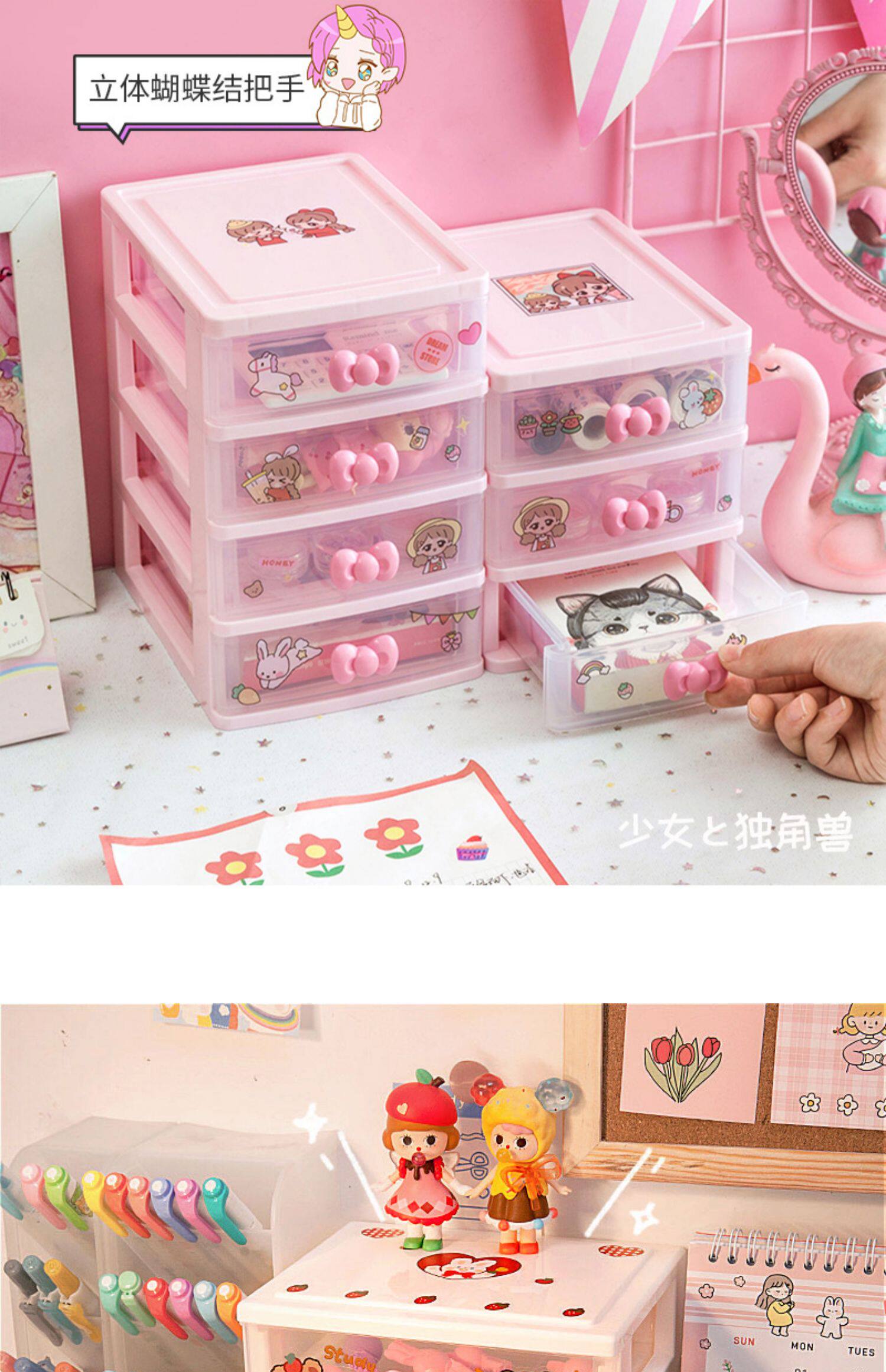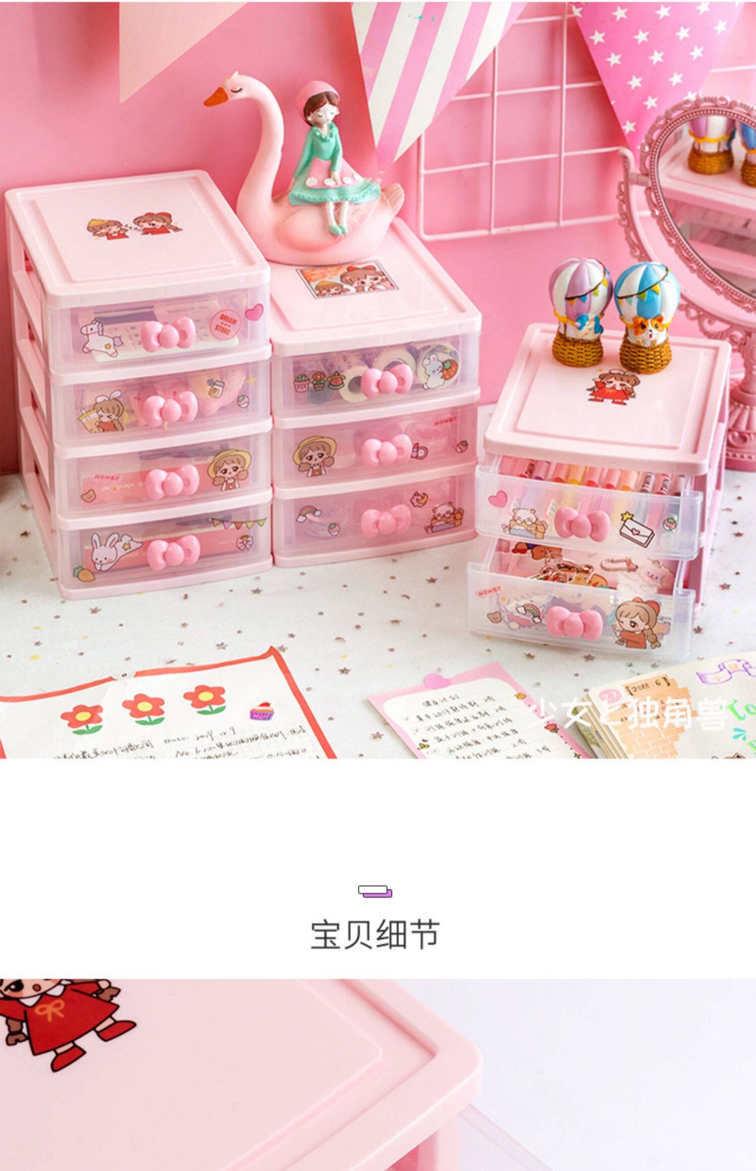 Милый ящик органайзер Рабочий стол Маленькая коробка Аксессуары для волос Офисная стойка Девушка Студенты сердца