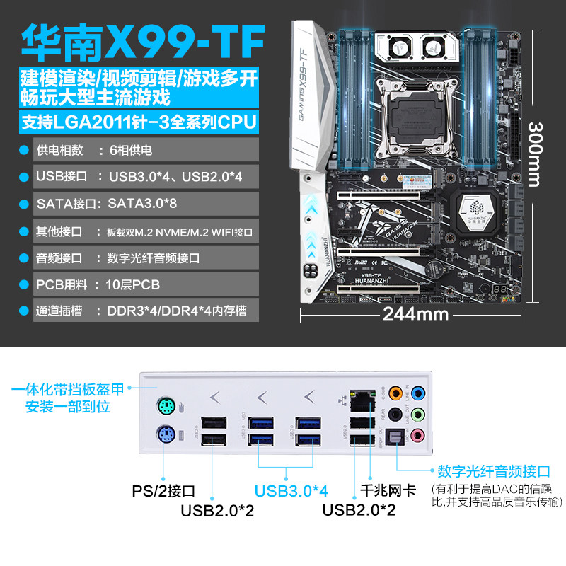 Южный Китай Золото Новости X99TF Господа панель C кожзаменитель комплект DDR4 память полосатый Настольный компьютер 2011. стрелка Сильный 2696V3