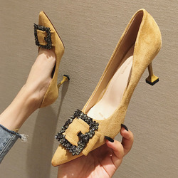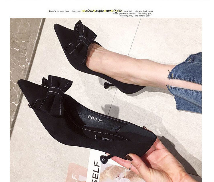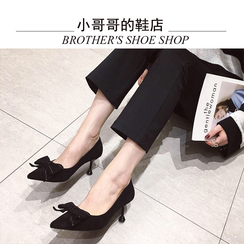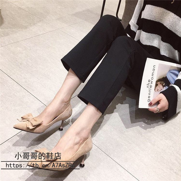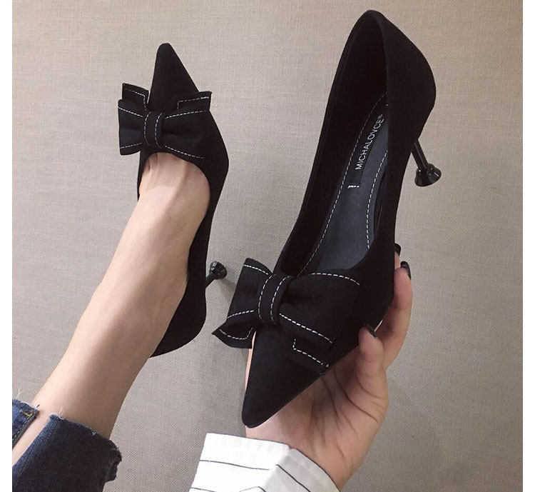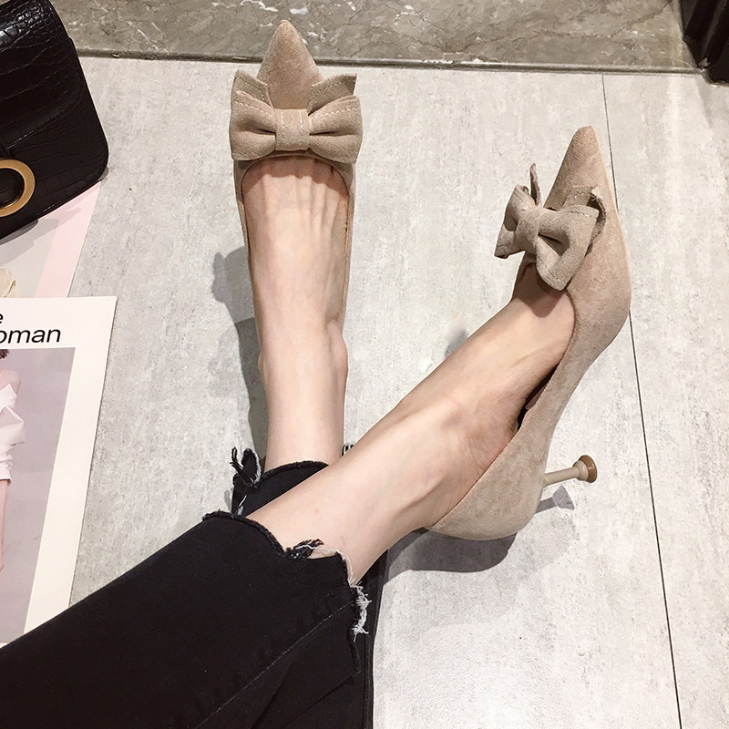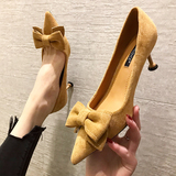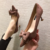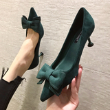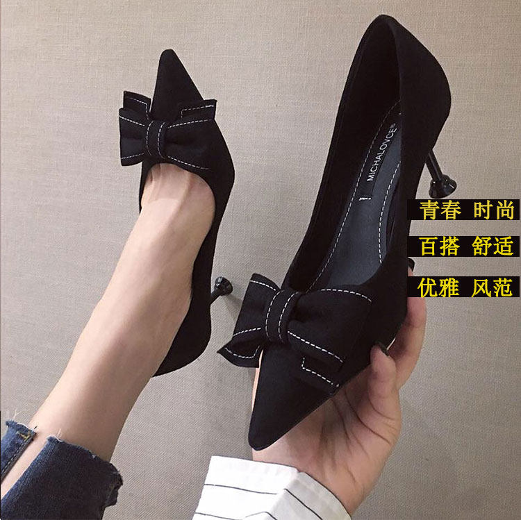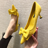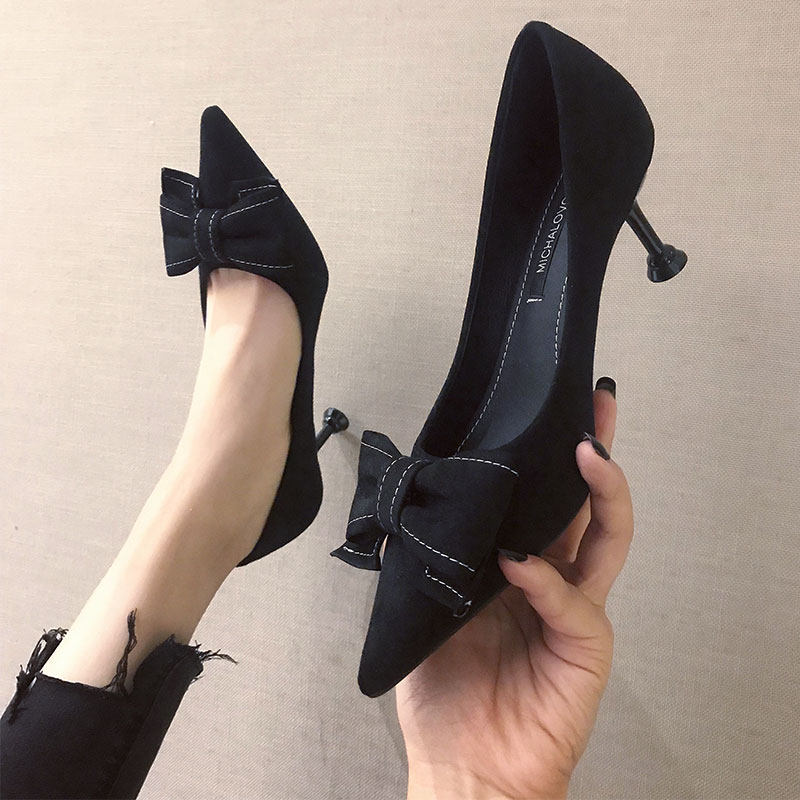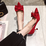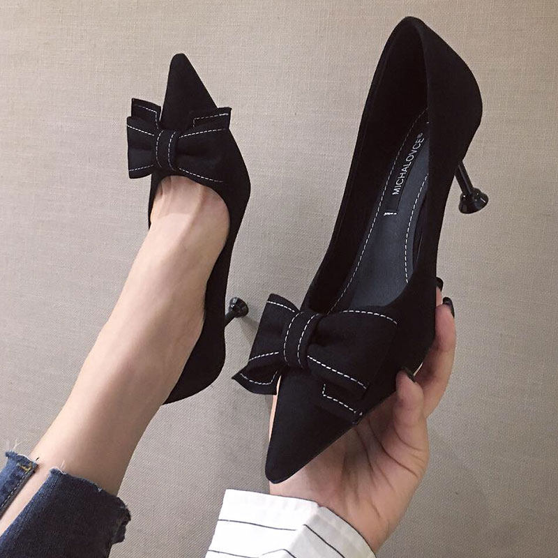 2021 демисезонный новая коллекция Джокер красный на высоком каблуке Женские летние туфли на шпильке с острым носом Каблук 5см туфли черный бантики Морской узел
