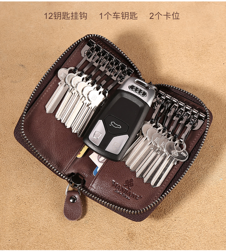 Мань мужской ключ пакет из натуральной кожи Большая емкость Многофункциональная талия с замками Замок ключа шины кожаный винтаж Приспосабливаться пакет