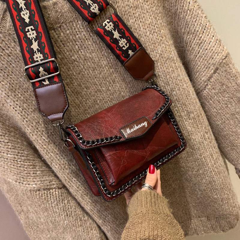 Верх новый Небольшой пакет пакет ЖЕНЩИНА 2021. новая коллекция прилив популярный винтаж Сяо Фэн пакет корейская версия Дикий широкий плечевой ремень один Плечо пакет
