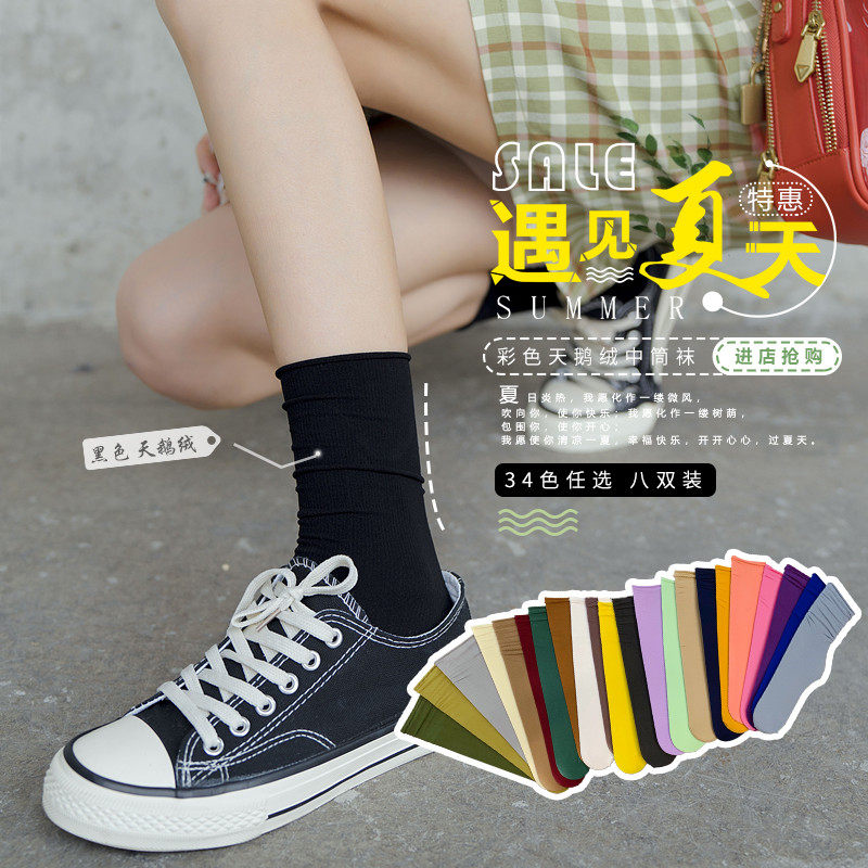 Куча чулок стиль Ледяные или ледяные носки летние носки средние Sock Network красный стиль белый Чулки Ледяные чулки Женский летний квартал