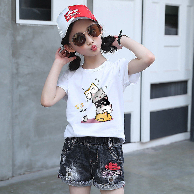 Детское на девочку Футболка 2022 новая коллекция детские чистый хлопок короткий рукав Иностранное летнее платье верх Подводное лето