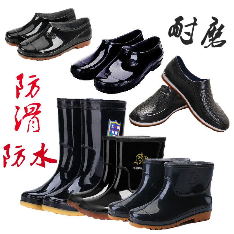 Дождь обувь мужской водонепроницаемый Ботинки для воды мужской стиль высокие средние Краткая трубка низкая кухня взрослых резиновых сапог для отдыха