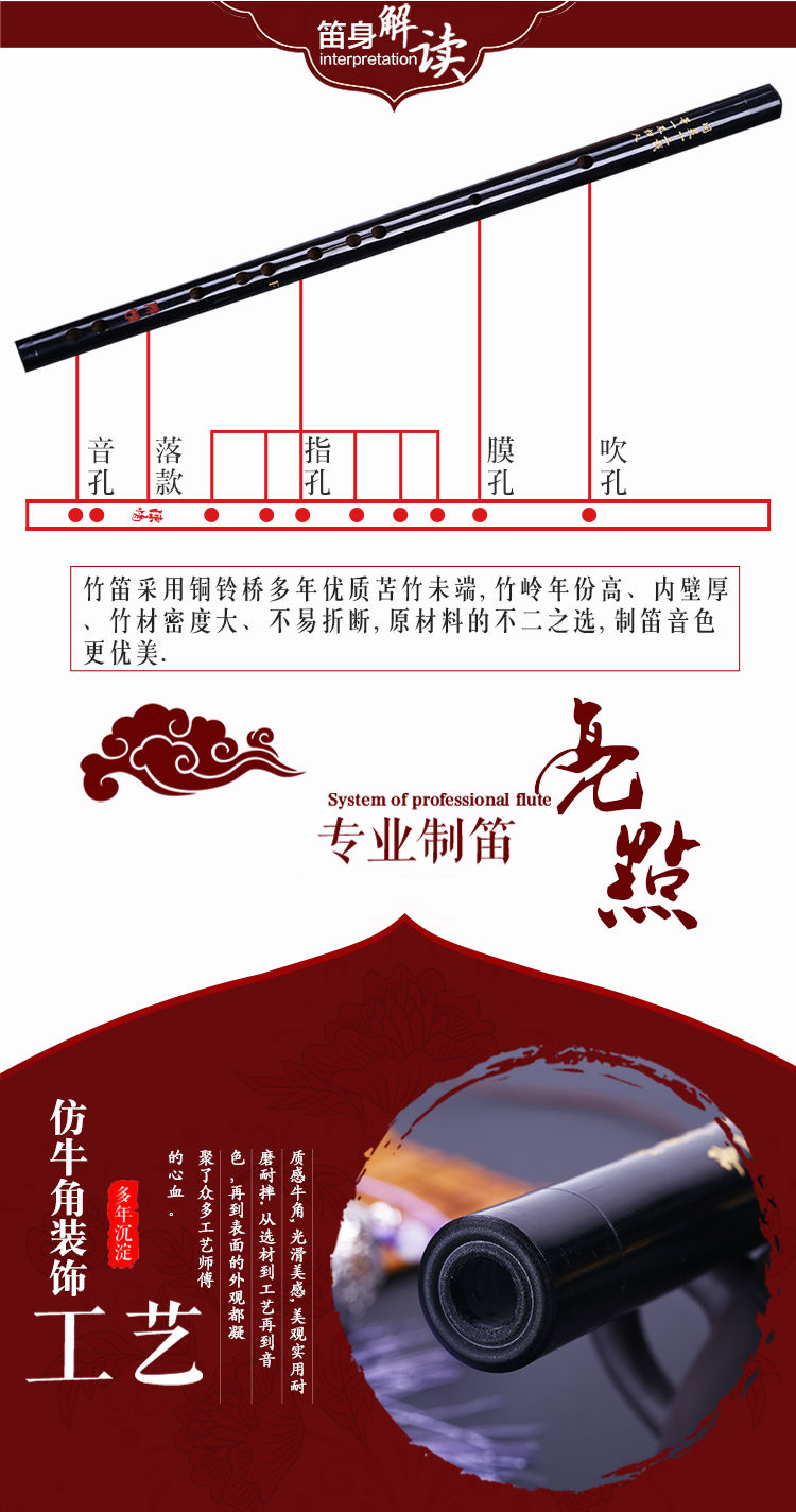 Чэнь Цинди волшебная флейта древний реквизит для начинающих дверь Инструментальная флейта Вэя с отсчетом нуля без Сиань Лин Данг Суй