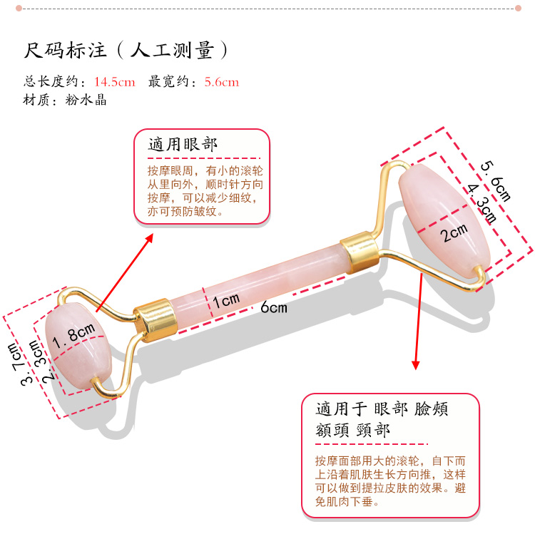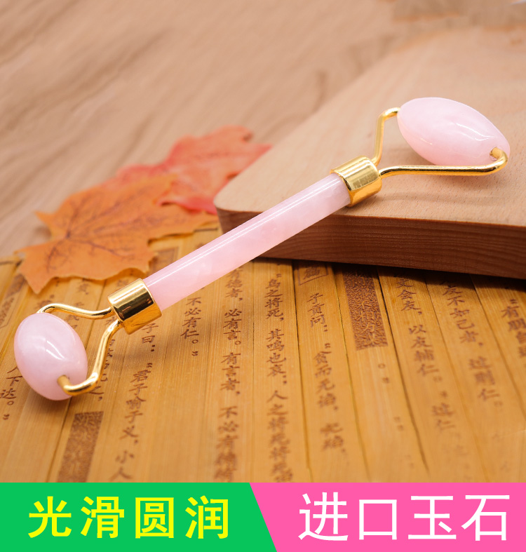 Натуральный розовый кристалл нефрит с двойной головкой массажная палка для лица женский v-образный артефакт роликовый глаз в подарок Эфирное масло