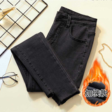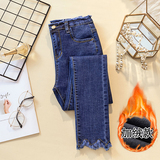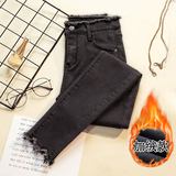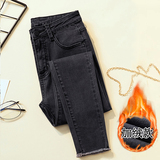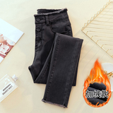 2020 осень-зима время года новая коллекция Матч черный эластичные джинсы женский замшевый высокая Талия приталенный утепленный Брюки с потертостями