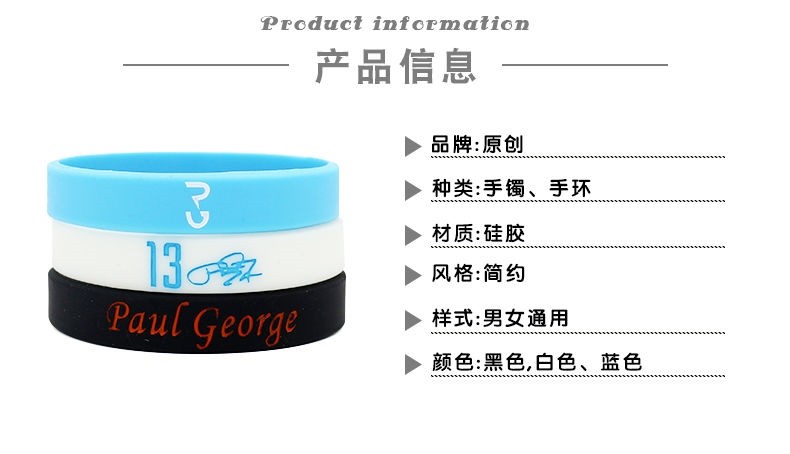 Гром № 13 Джордж Баскетбол Браслет NBA Браслет мужские и женские Силиконовые ювелирные изделия спортивный браслет ночной светлый студент
