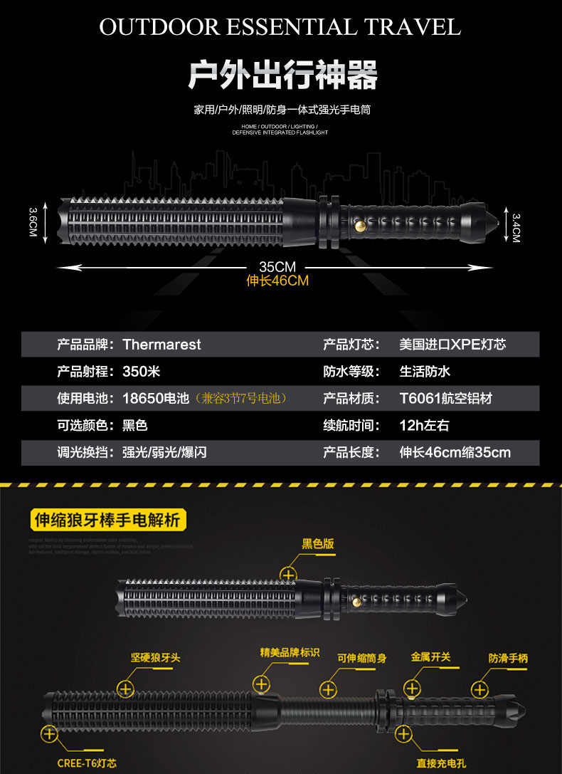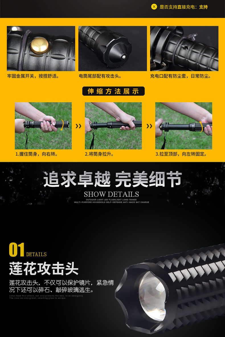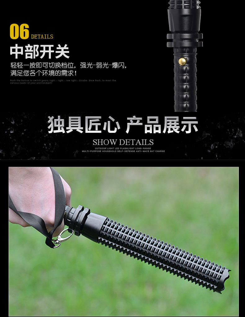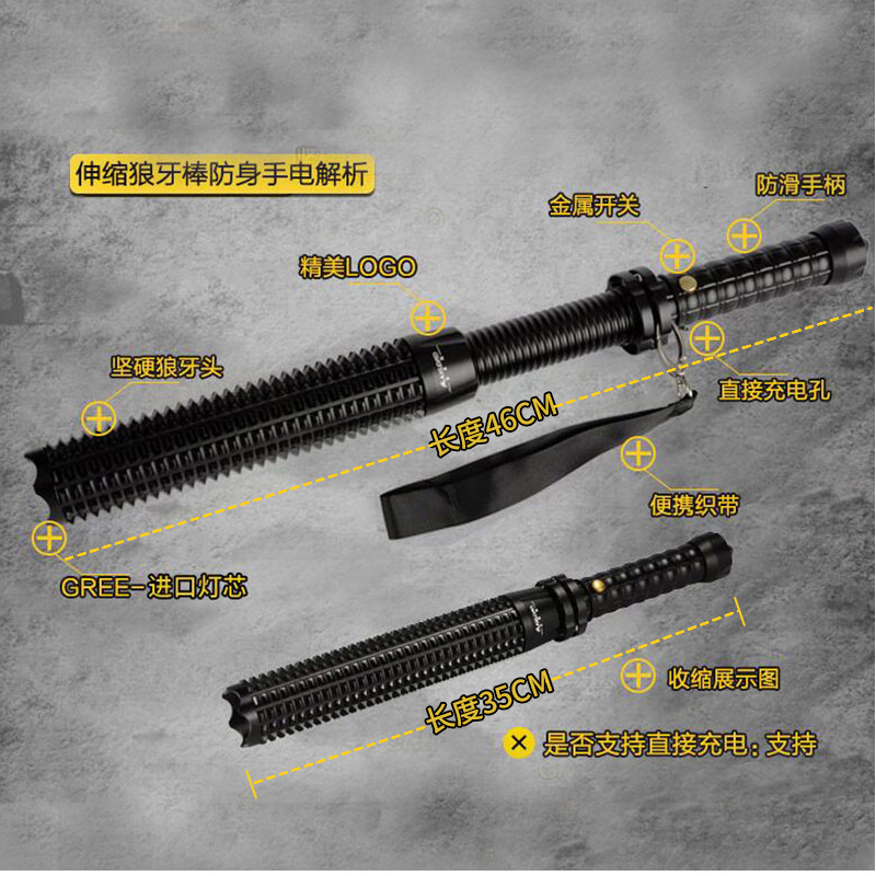 Фонарик для самообороны сильный свет перезаряжаемое оборудование для обеспечения безопасности патрульное оружие самооборона мужские и женские Булава полностью Взрывобезопасный