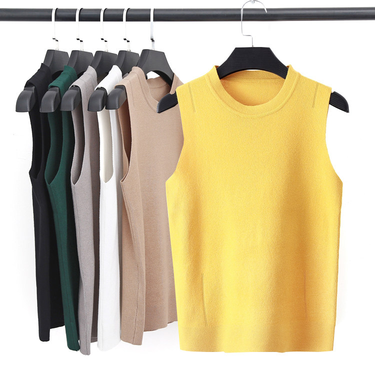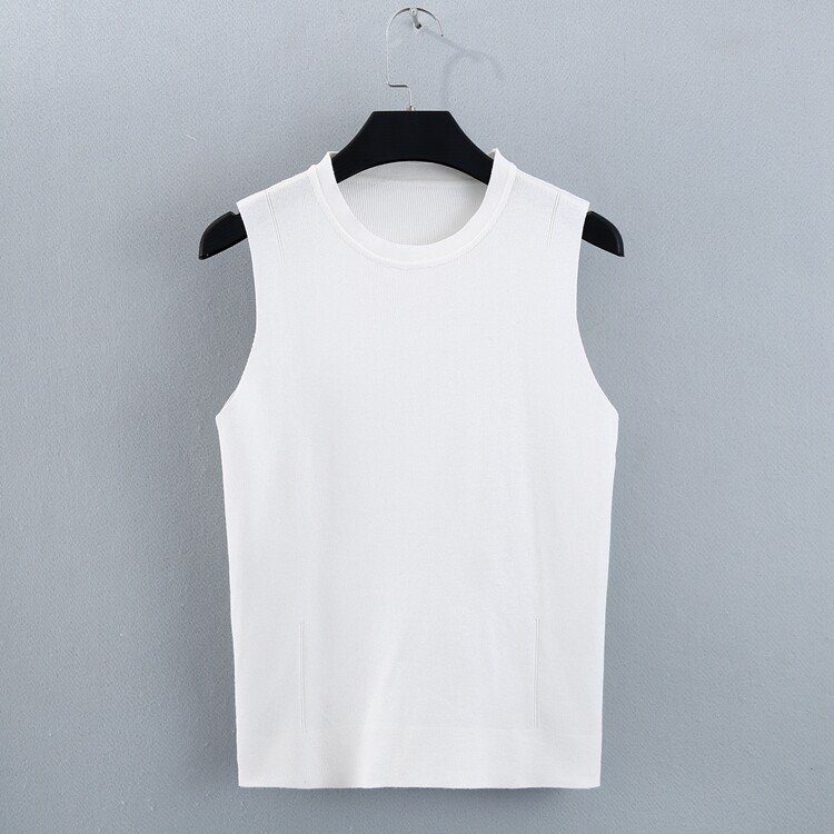 2020 летние новая коллекция Женская одежда круглый воротник эластичные приталенный Брагорист трикотажный Рубашка без рукав верх Одежда