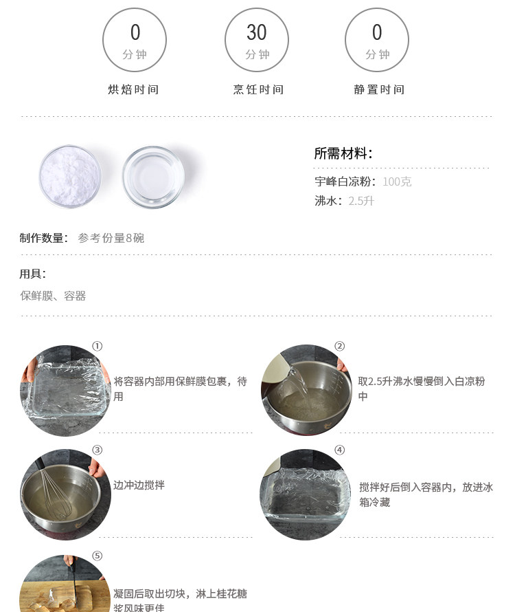 Юфэн белый 100 г желейной рисовой лапши, роса саго, ледяной порошок, трава, хрустальное желе, порошок конжак, вода, кекс Ксинген