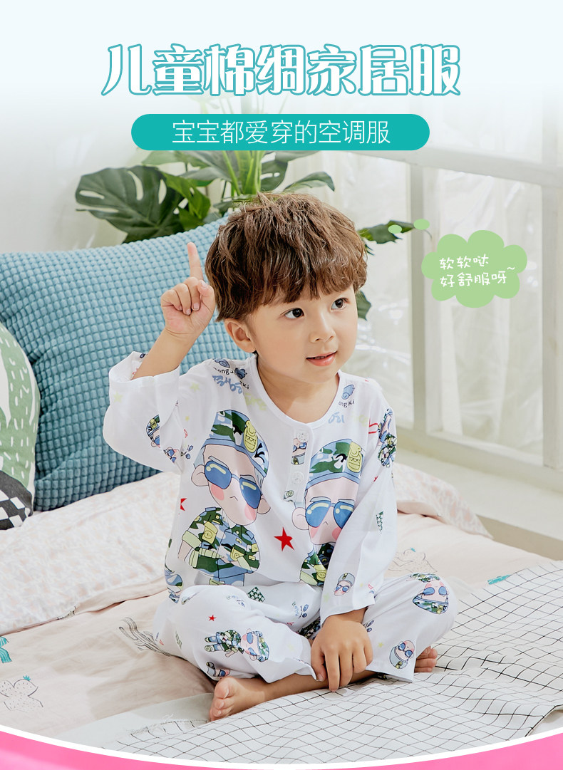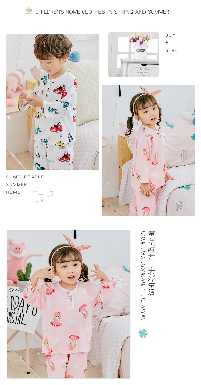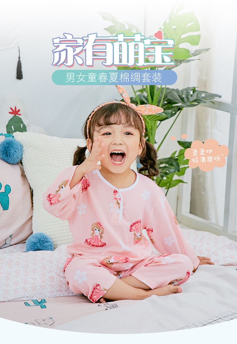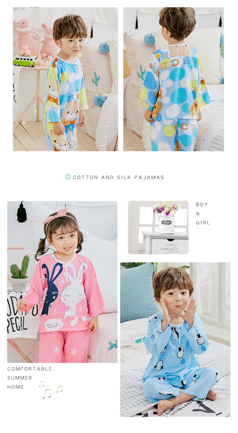 Детские Пижамы летом тонкие стиль хлопок шелк комплект длинный рукав Ребенок на мальчика Кондиционер детские Хлопок шелк на девочку Спортивный костюм