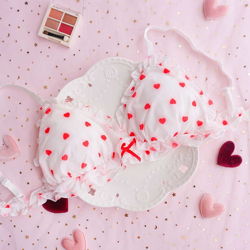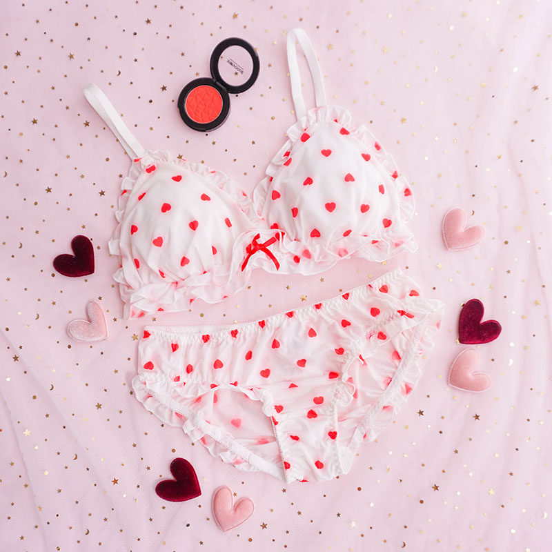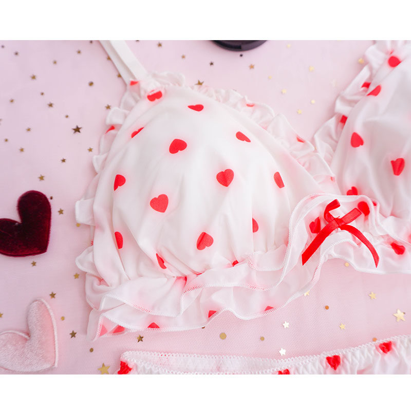 Любовь нижнее белье головокружение без Стальное кольцо треугольник Кубок молока Silk милая печать удобное персиковое сердце комплект нижнее белье