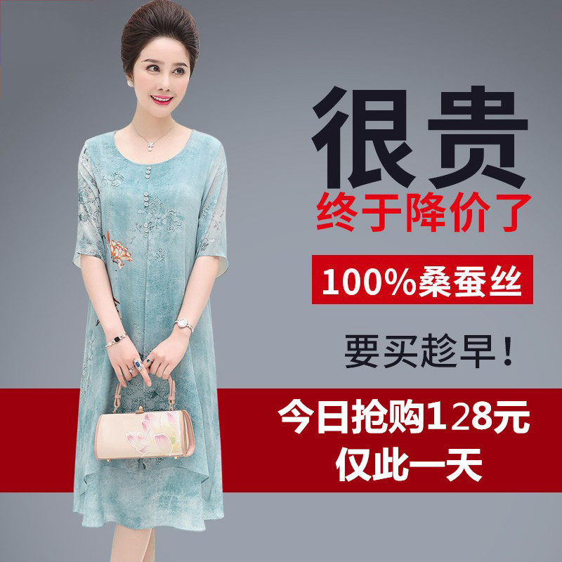 Среднего возраста матери летнее шелковое платье женское плюс удобрения плюс большой размер Шелковая юбка шелковицы средних лет прогрессивный Два куска