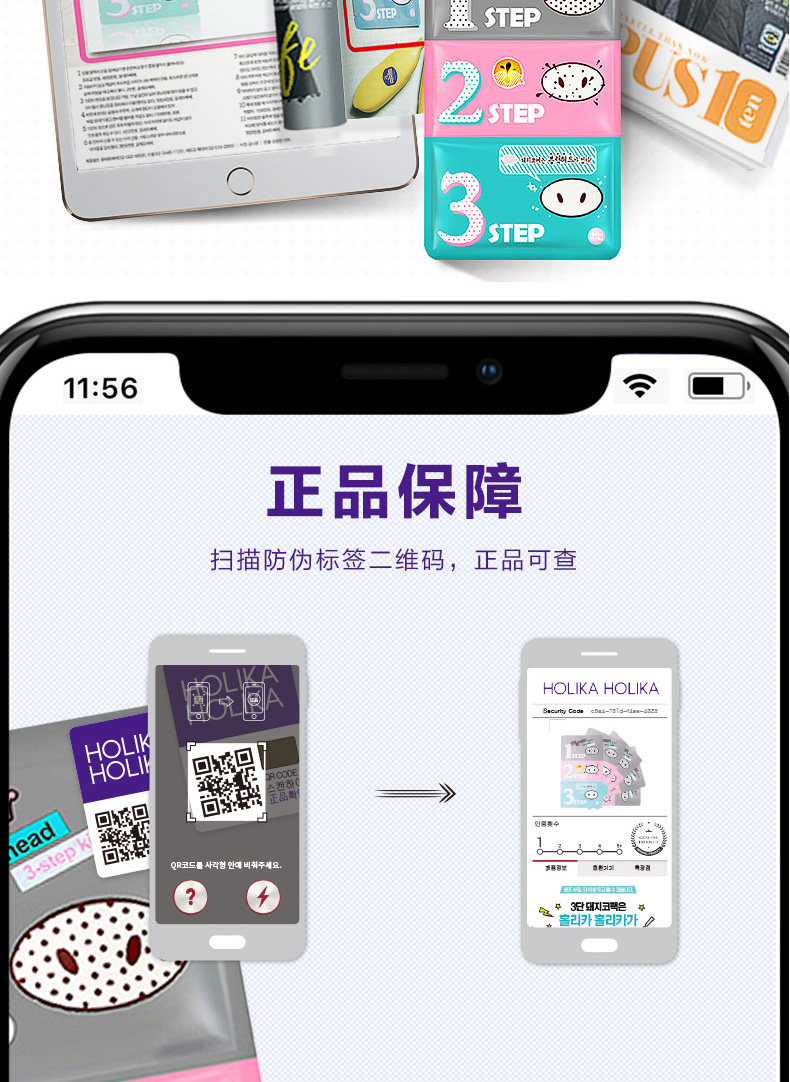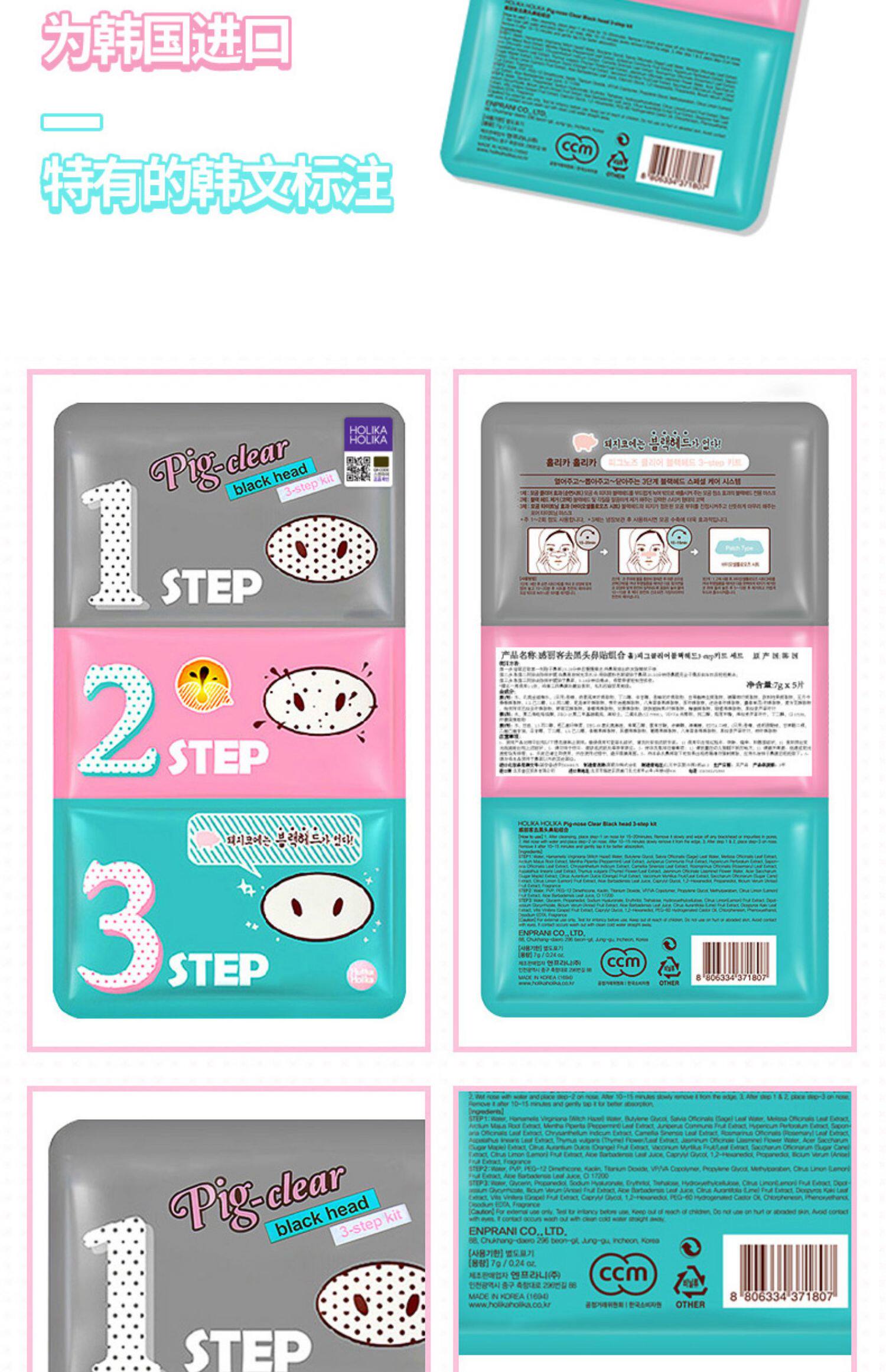 Корейский Holika черный Комбинация палки голова-нос черный Три шага пластыря для носа от прыщей