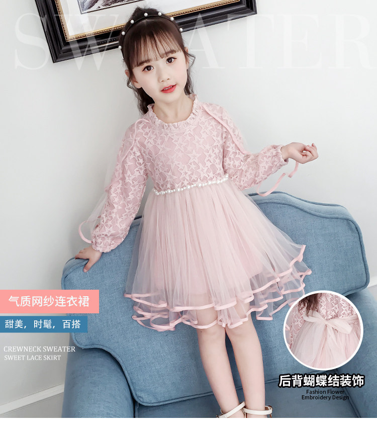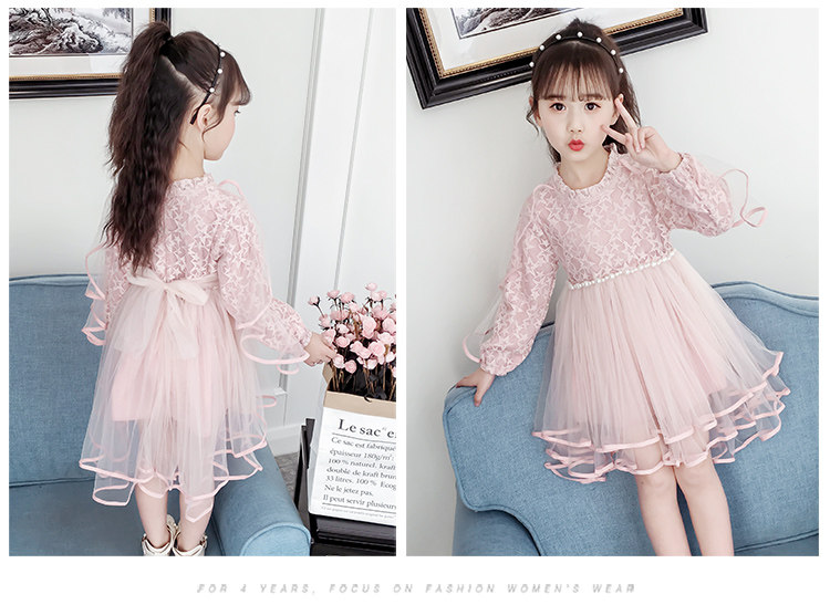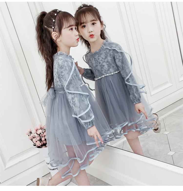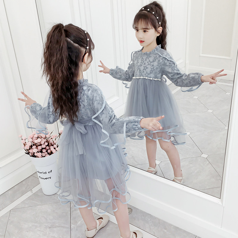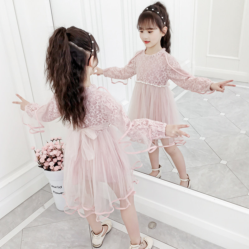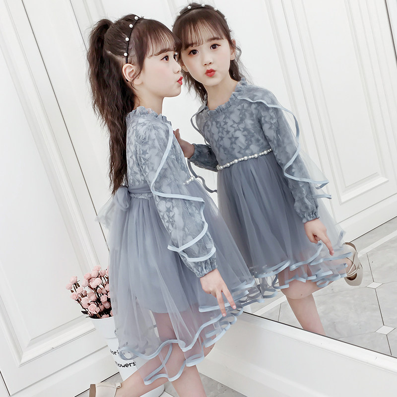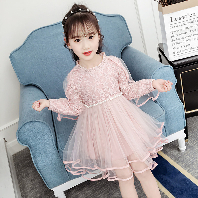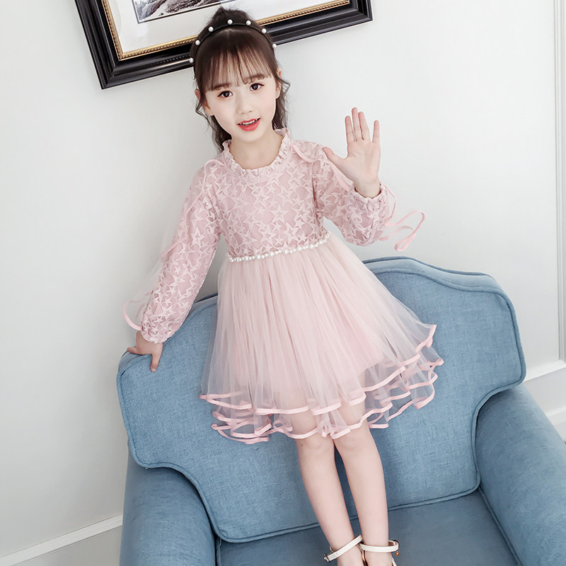 На девочку Платье 2019. новая коллекция западный стиль для маленькой принцессы юбка демисезонный корейская версия детские длинный рукав Юбка девушка кружевная юбка