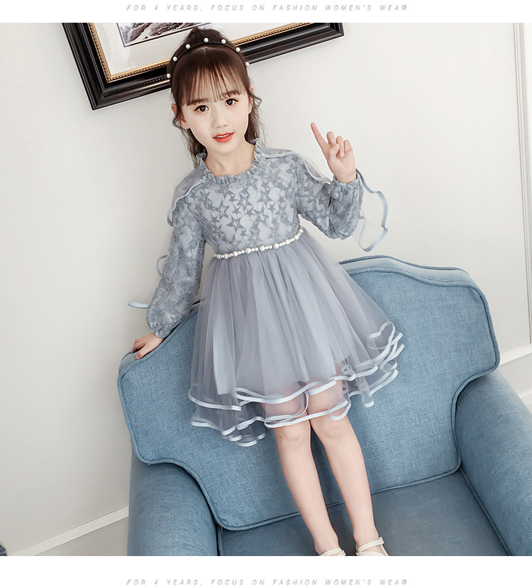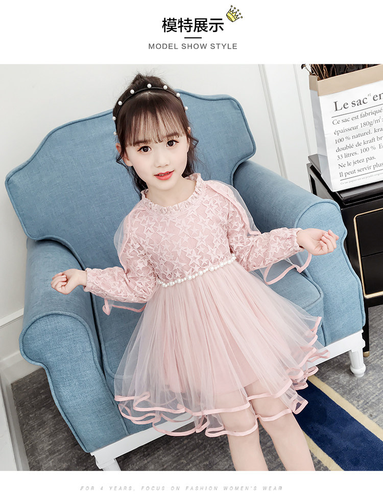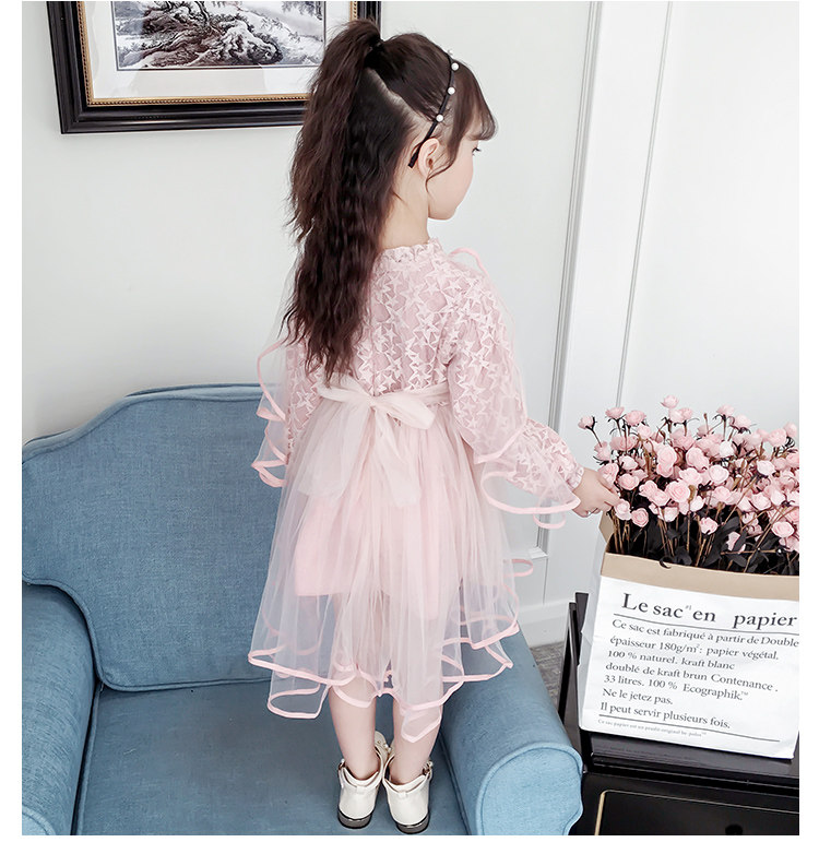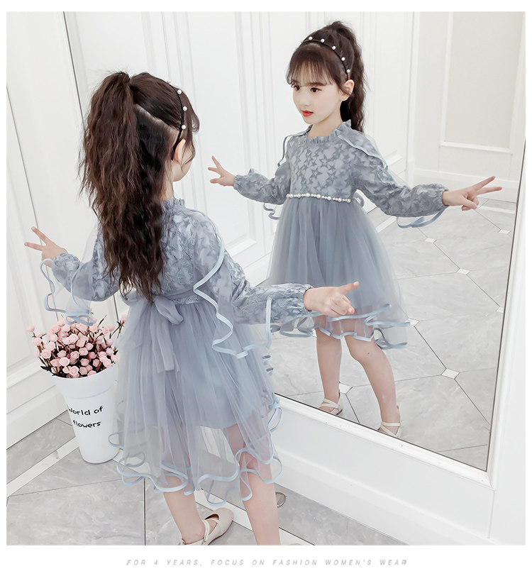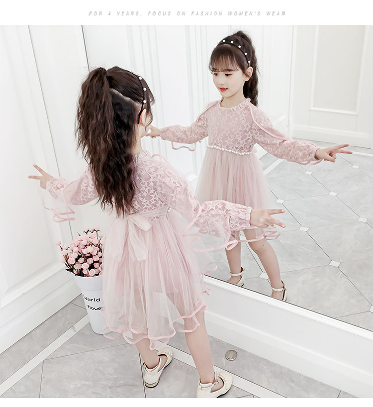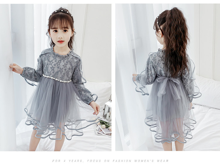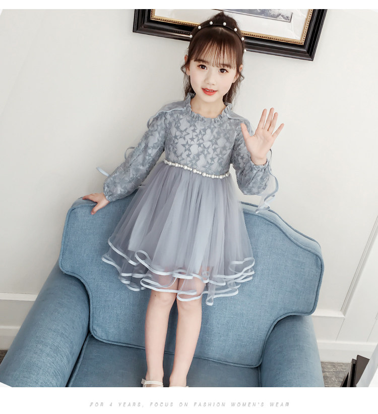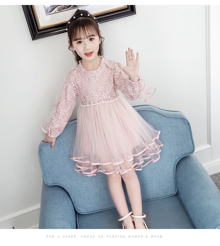 На девочку Платье 2019. новая коллекция западный стиль для маленькой принцессы юбка демисезонный корейская версия детские длинный рукав Юбка девушка кружевная юбка