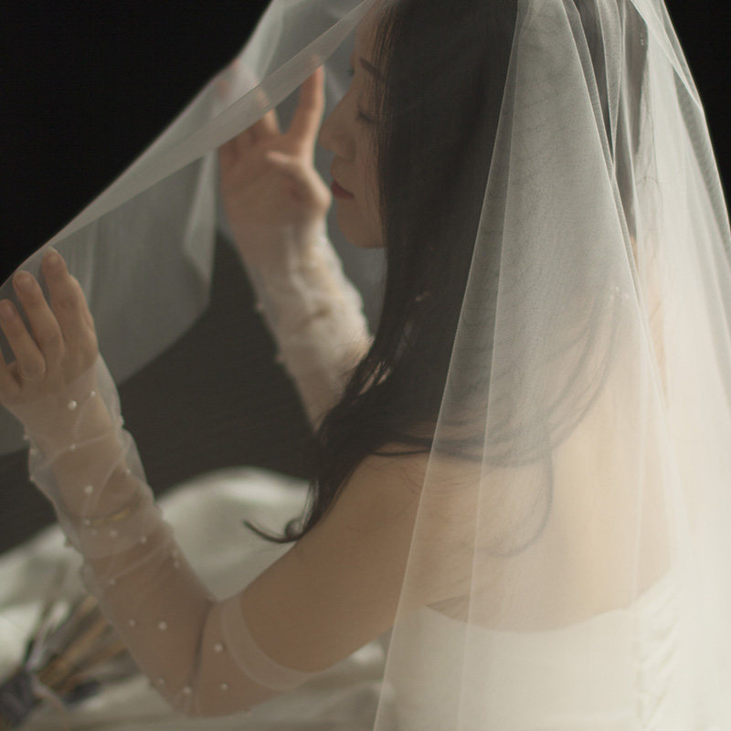 Оригинал "Синь Синь" светло шампанское новый Свадебное платье няни с вуалью свадебное Автопортрет двухслойный Маленькая вуаль