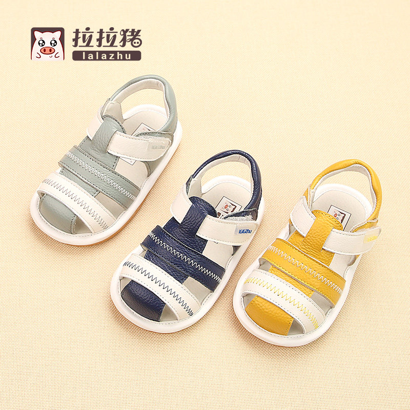 Lala свиньи лето детские на мальчика молодой детские Сандалии кожи на младенца Мягкое дно маленькое мужской Убраны 1-3 года 2
