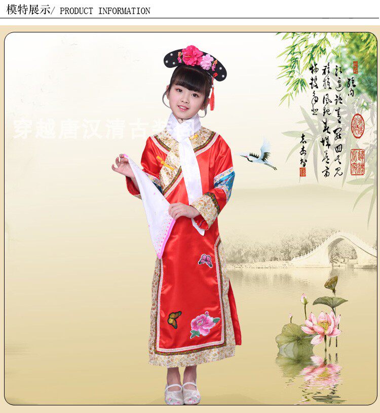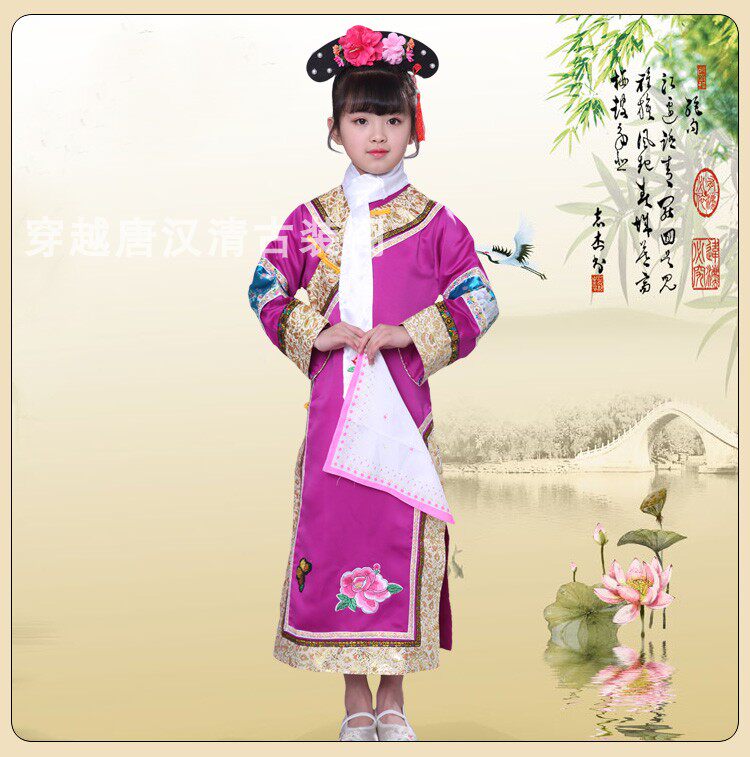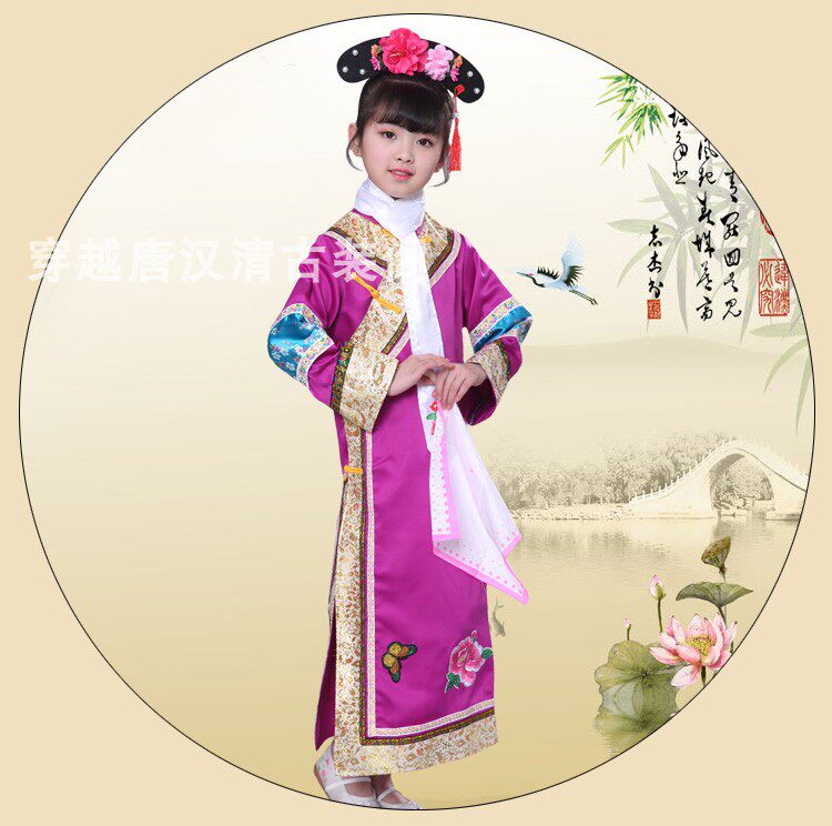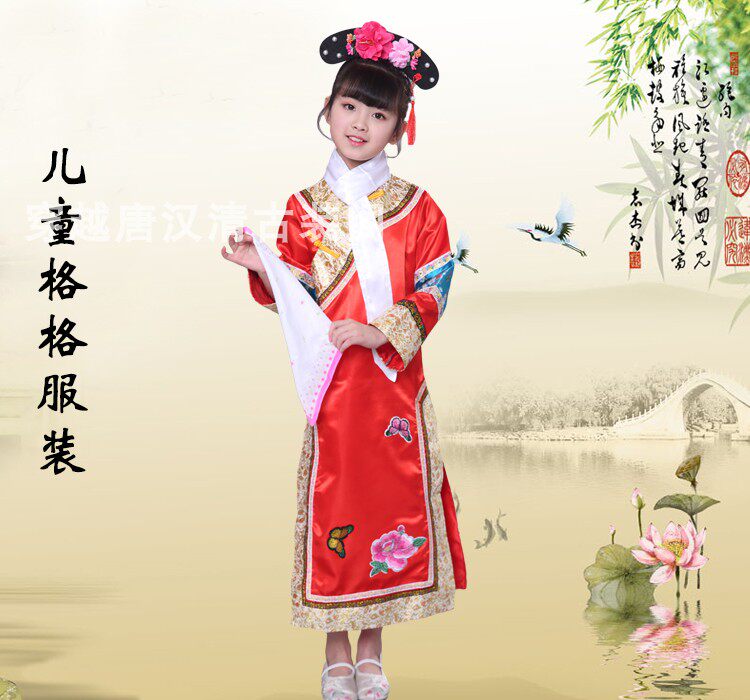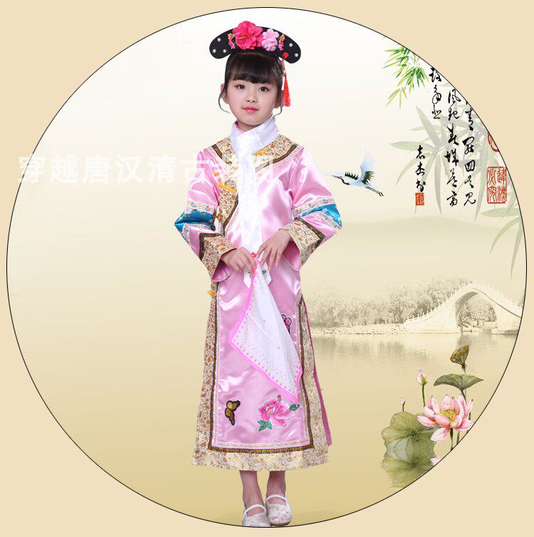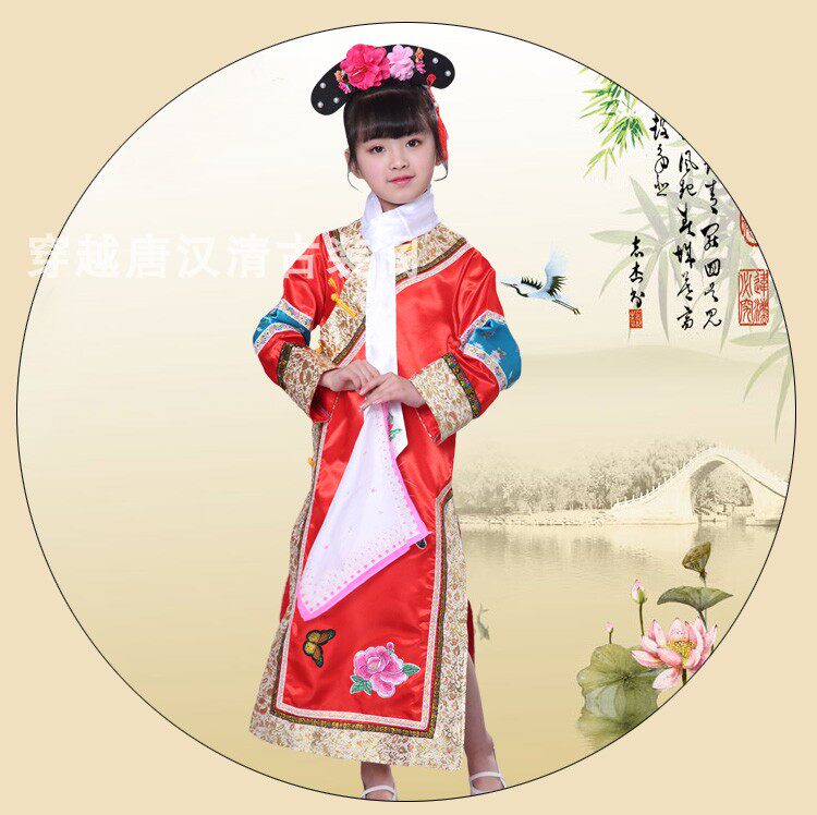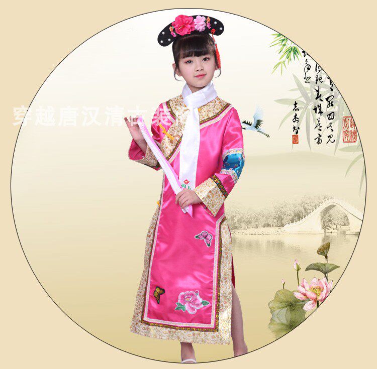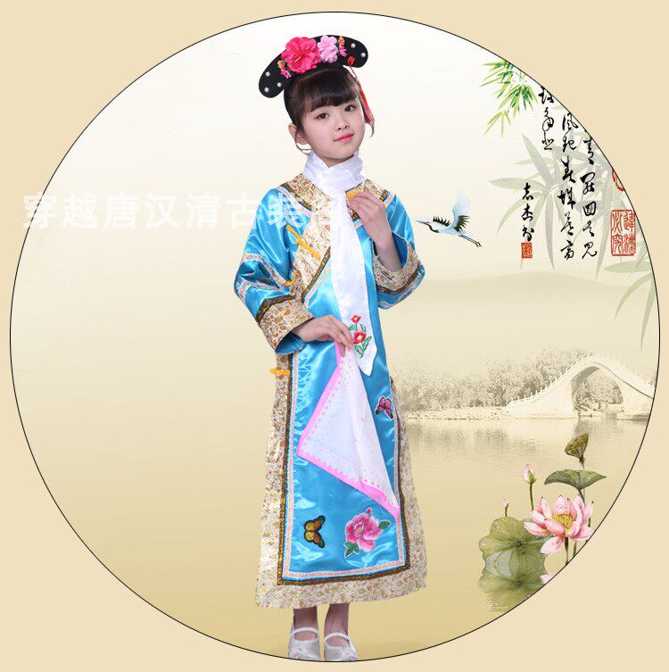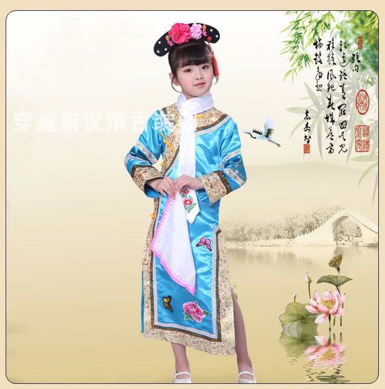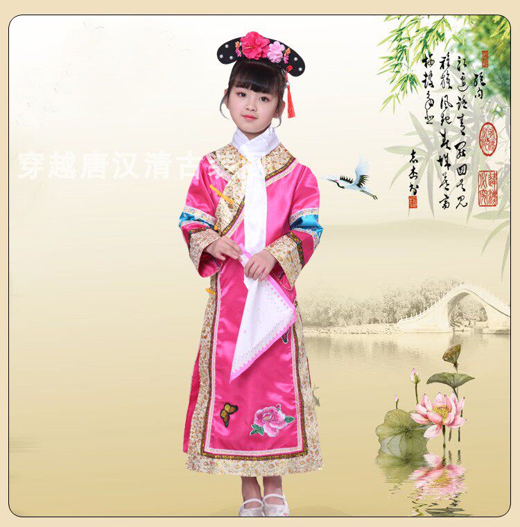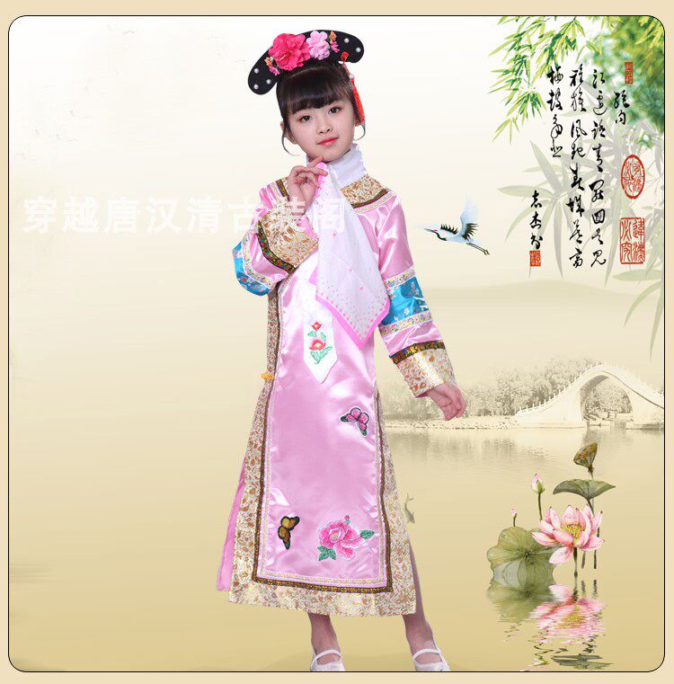 Детские Внешняя династия Цин на девочку имеет Девушка Маньч Новый год Новый год Китайская Одежда производительности ветра