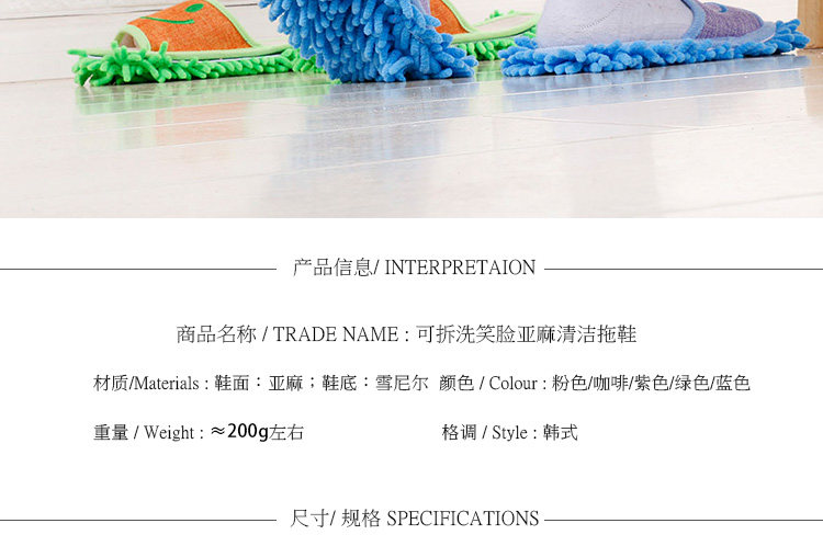 Новый товар новинка для влюбленной пары Съемный и моющийся мультфильм интерьер Конопля чистая тапки Ленивый вытирать пол панель тапки Тряпка вакуумная тапки Немой