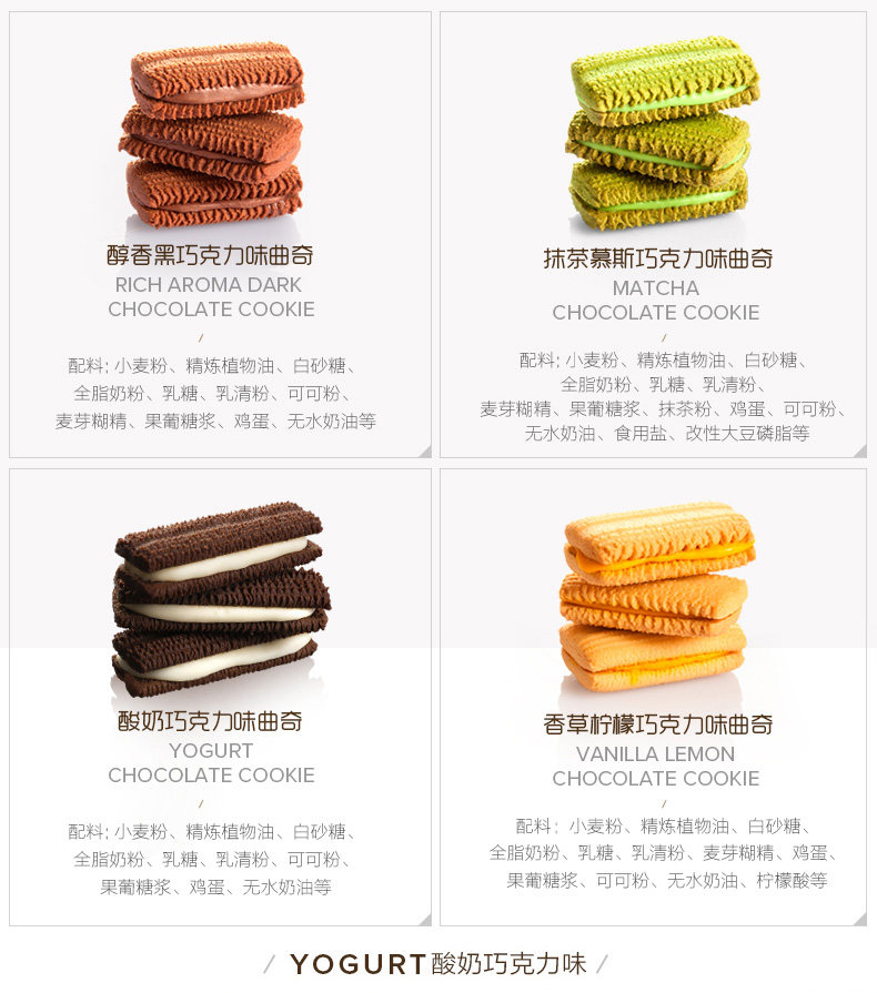- 【Пакет для печенья 95 г】2 пакета со вкусом шоколада Matcha Mousse + 2 пакета со вкусом ванили и лимона с шоколадом