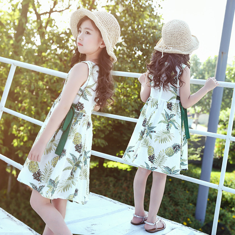 На девочку Qi. хлопок Шесть платье Летнее платье 2021 новая коллекция Mianxia. детские Девушка летняя юбка
