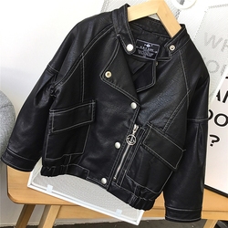 Детские кожаная одежда куртка 2021 новая коллекция корейская версия детские демисезонный западный стиль на мальчика на девочку кожа жакет паровоз детское прилив