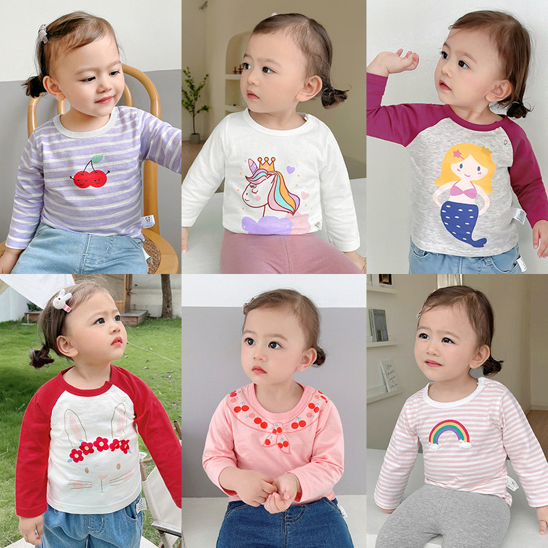 На девочку длинный рукав Футболка на младенца одежда чистый хлопок Весна демисезонный детские женский детские Процветать верх Одежда ZY078