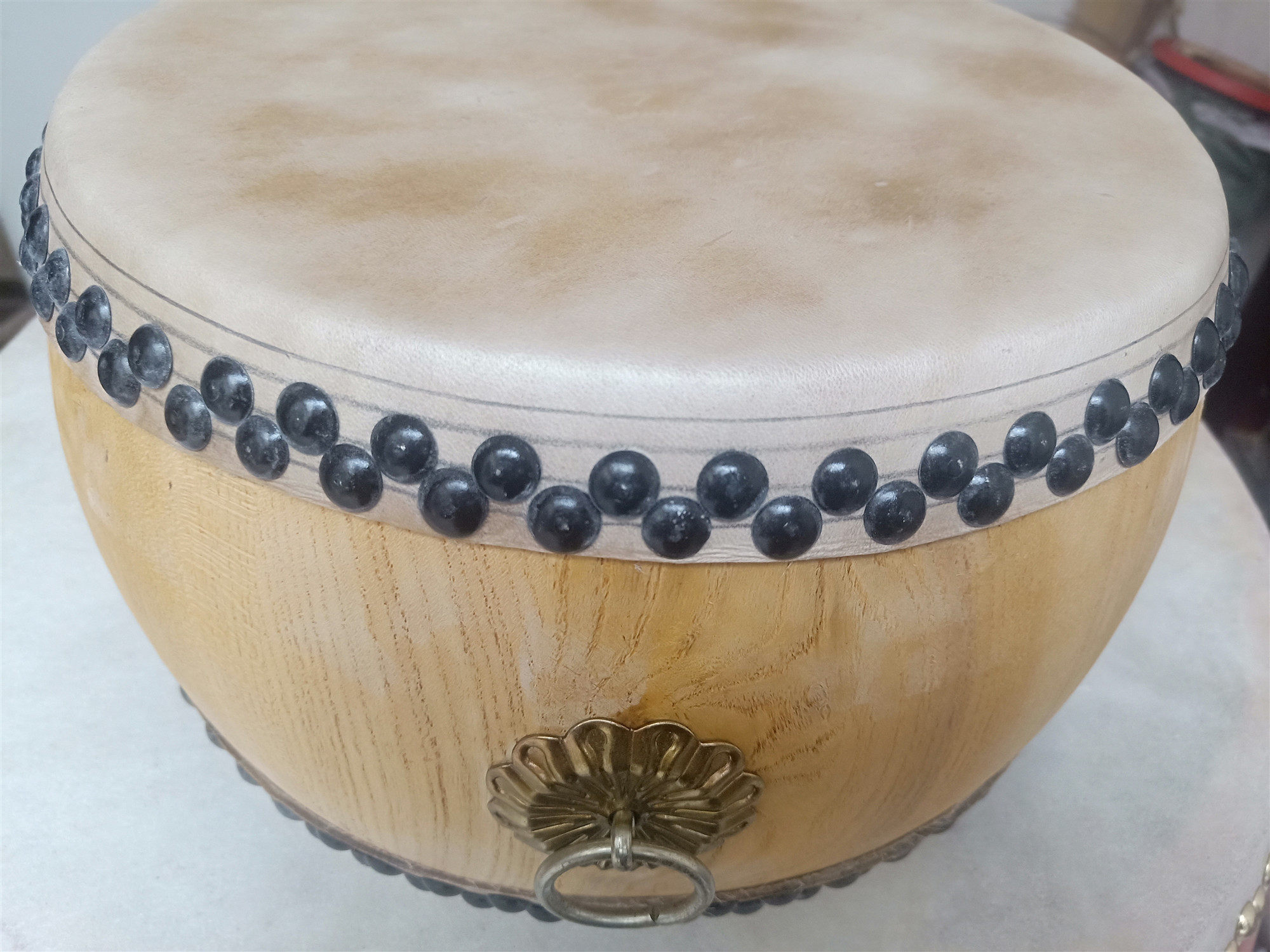 - 12 -инд желтый кожаный 木 鼓 + железная барабанная стойка