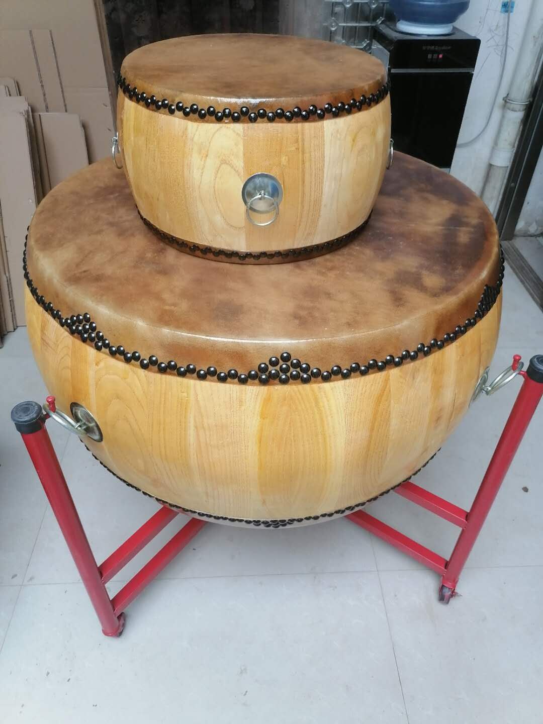 - 8 -инд желтый кожаный 木 鼓 + железная барабанная стойка