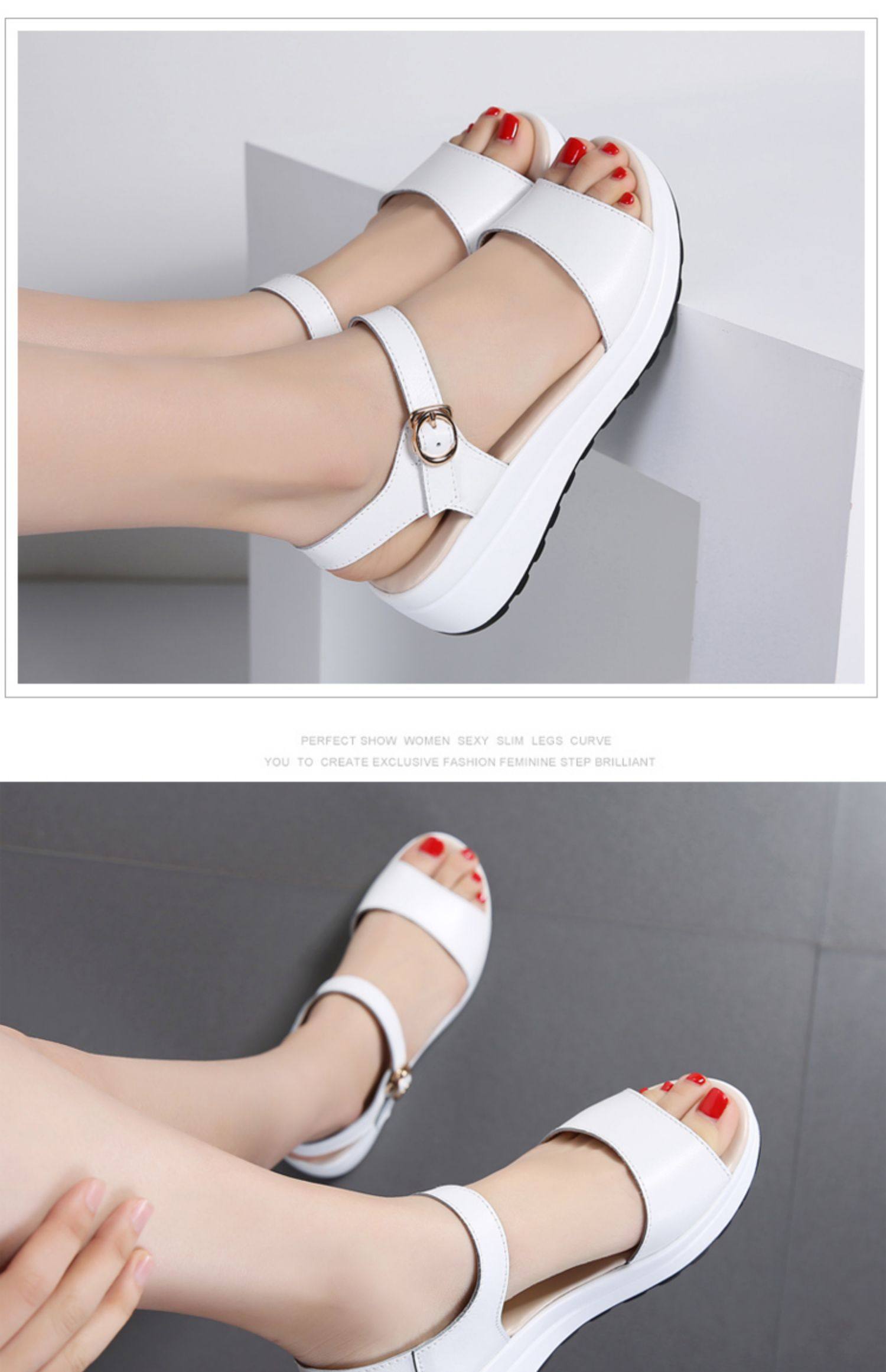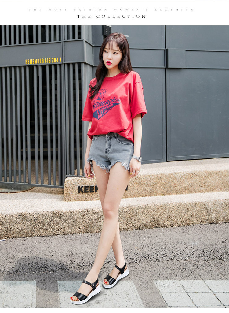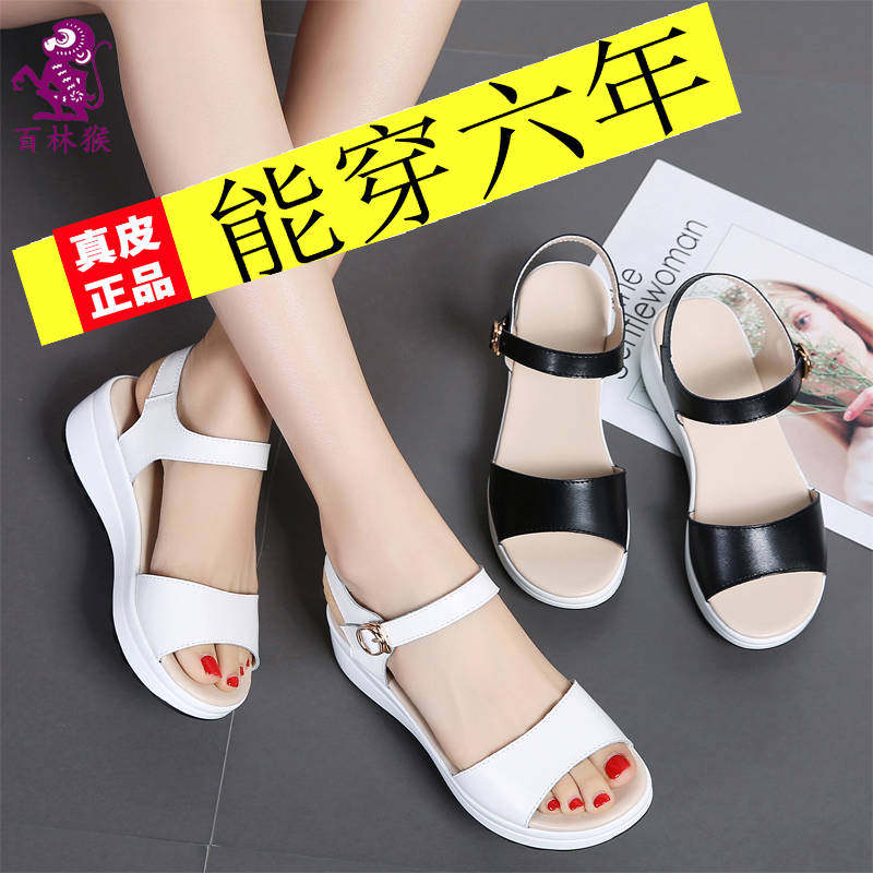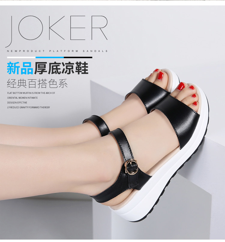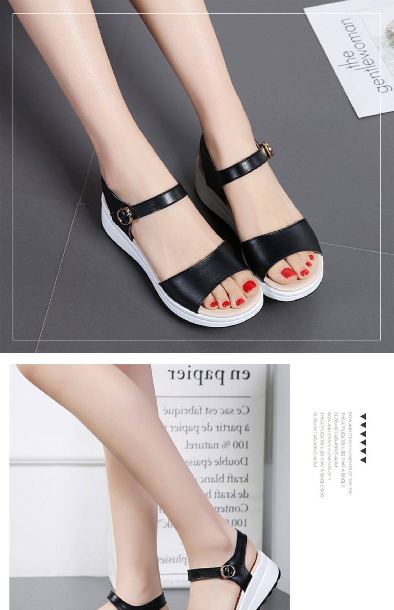 Красный Желтое лето из натуральной кожи корейская версия для отдыха толстая конец на танкетке Маффин с застежкой Носить сандалии нескользящие холодный тапки женский