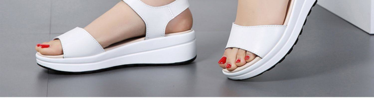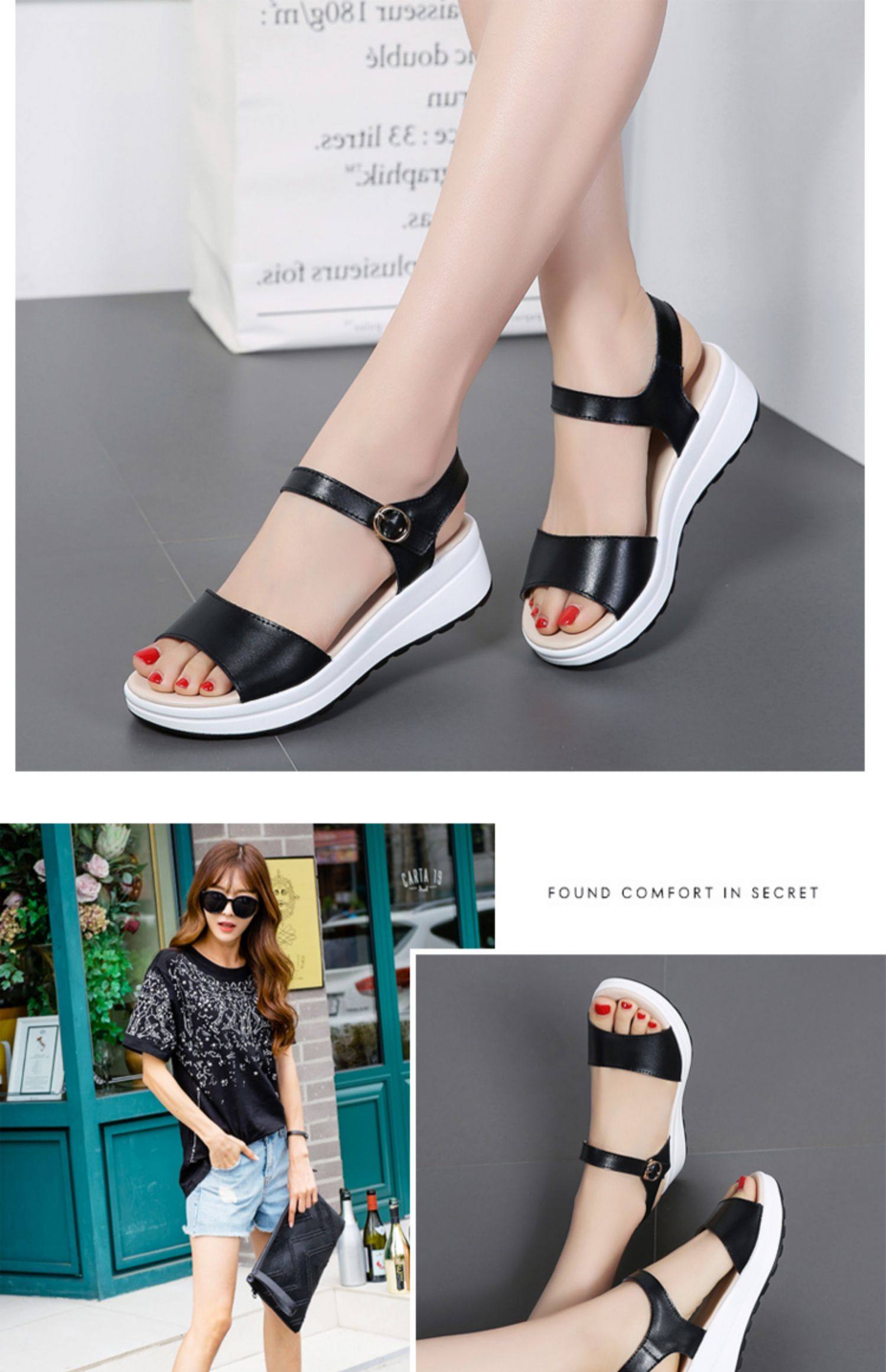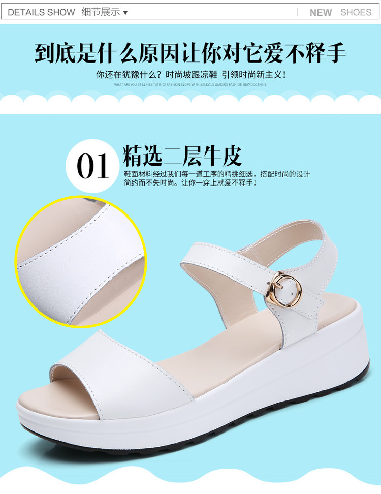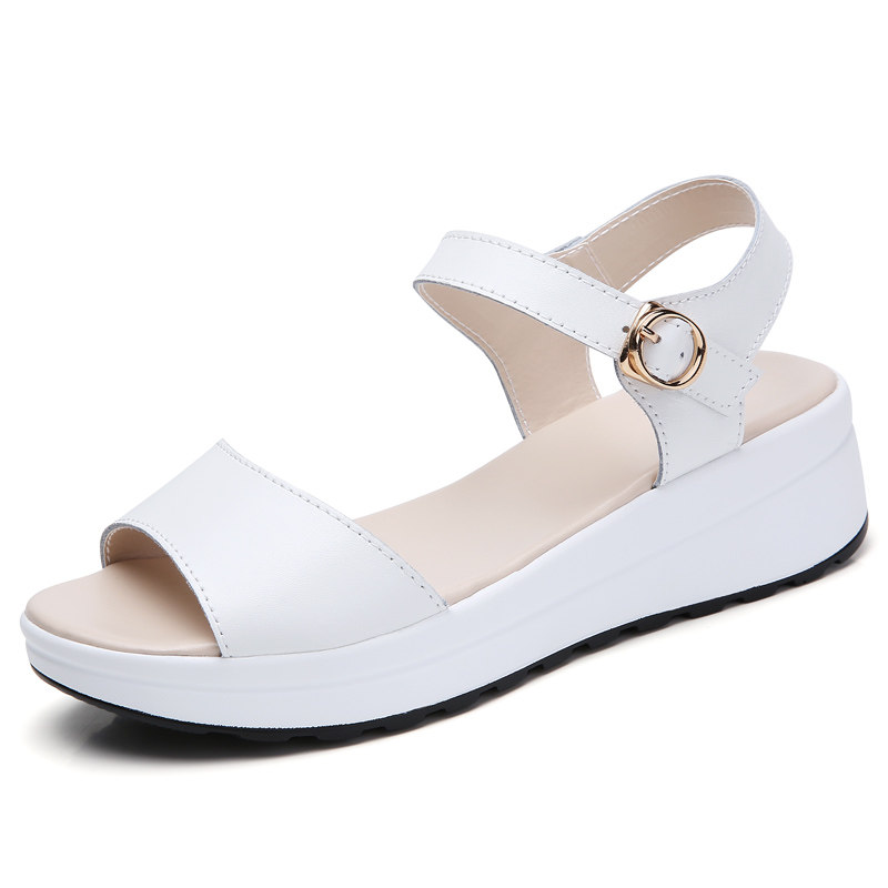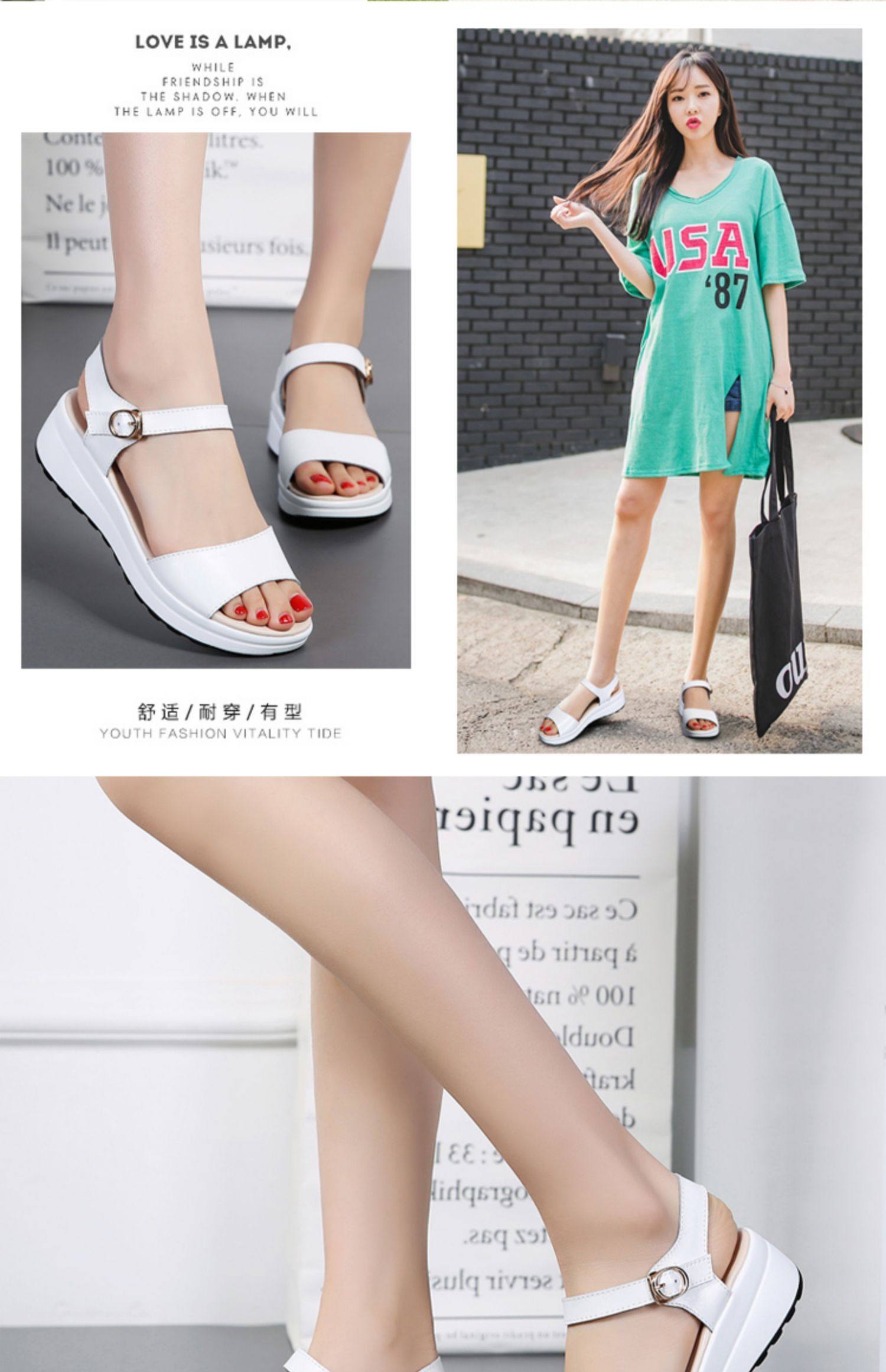 Красный Желтое лето из натуральной кожи корейская версия для отдыха толстая конец на танкетке Маффин с застежкой Носить сандалии нескользящие холодный тапки женский