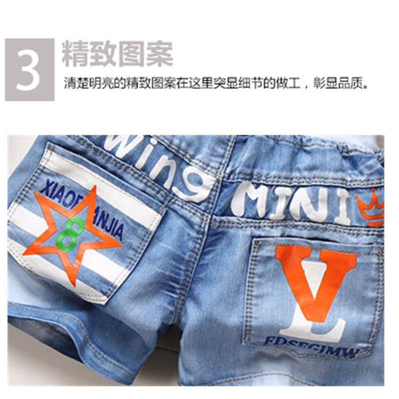Детские Наряд на мальчика джинсовый Большие дети в летних шортах для отдыха детские Тонкие штаны стиль небольшой мужской Детские пятиточечные штаны тренд