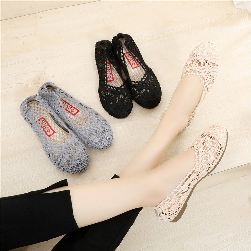 Летний Старый Пекин Ткань Обувь Женская Обувь Полая туфли на плоской подошве Кружево для отдыха Обувь мягкие яичные ботинки дикий горох бобы