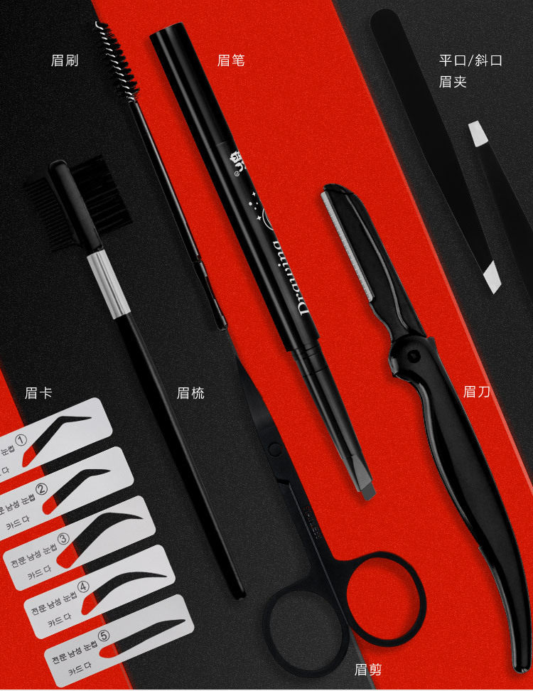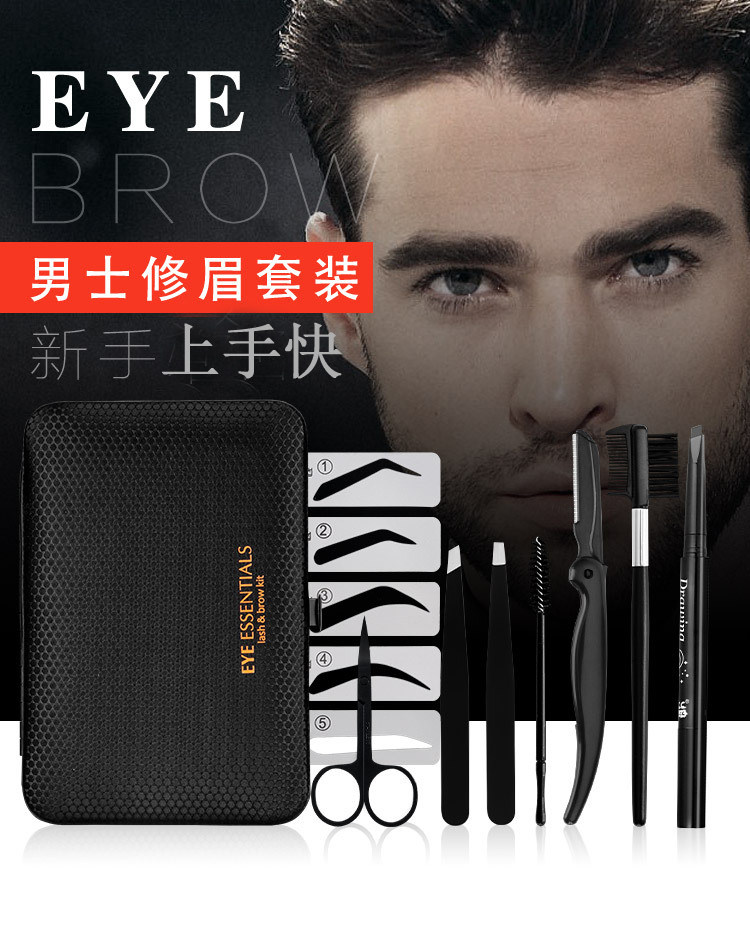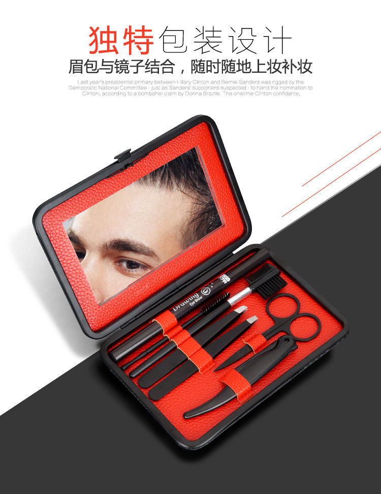 Для мужской Подравнивание бровей комплект Новички рисуют брови артефакт карандашом для бровей водонепроницаемый Защита от пота и натуральный черный Бритва для бровей Пудра для бровей