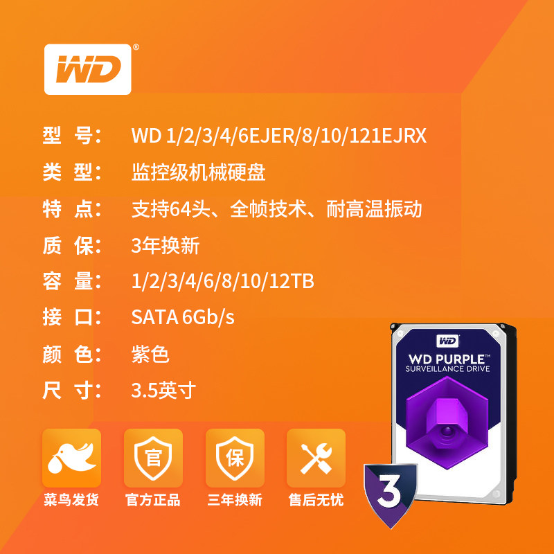 WD / Western Мониторинг данных Машины для мониторинга данных Жесткий диск 1T2T3T4T6T8T10T12T14T Фиолетовый блюдо WD10EJRX