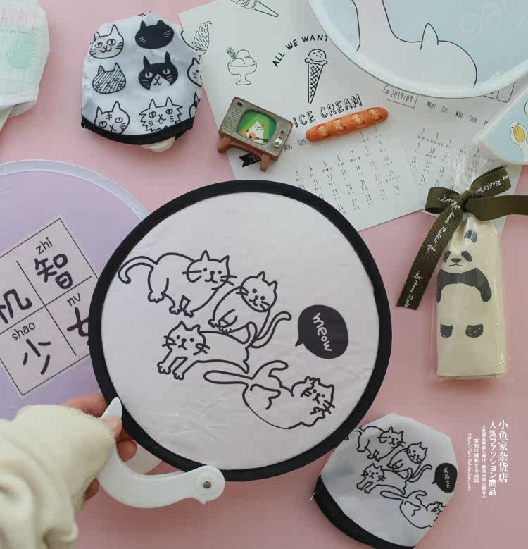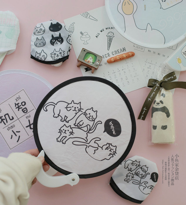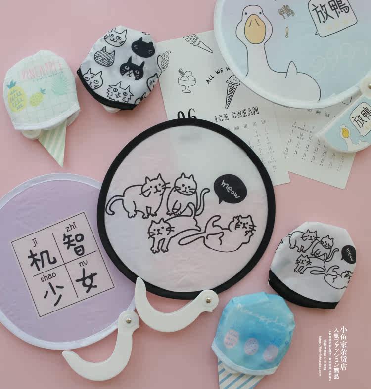 Рыбный домик лето крутой кот вишня ананас круглая форма со складыванием Ручка вентилятора маленький круглый вентилятор портативный вентилятор
