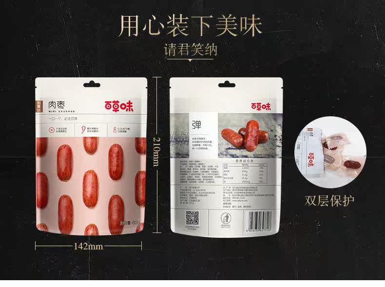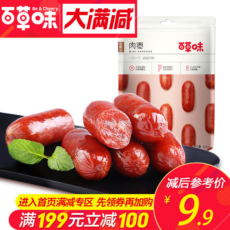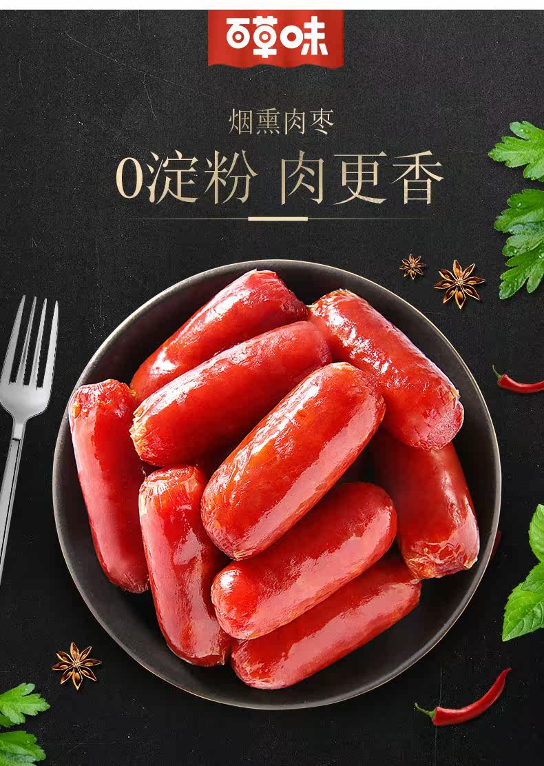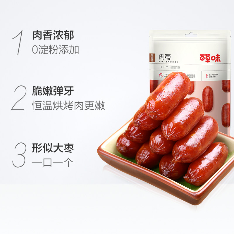 Полное сокращение【Сотни из ароматизированных на траве - мясо Jujube 60g】Жареное углерода маленькое кишечное мясо для отдыха Закуски красный Ветчина колбасы