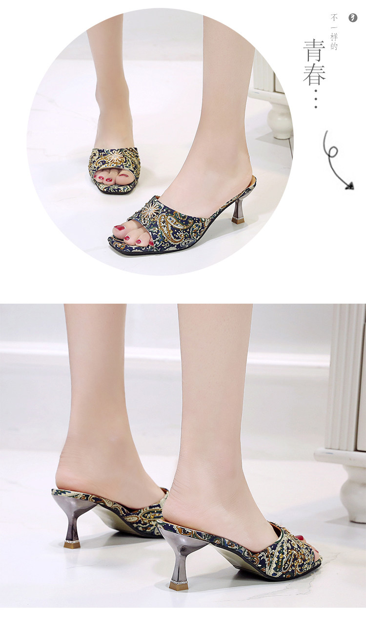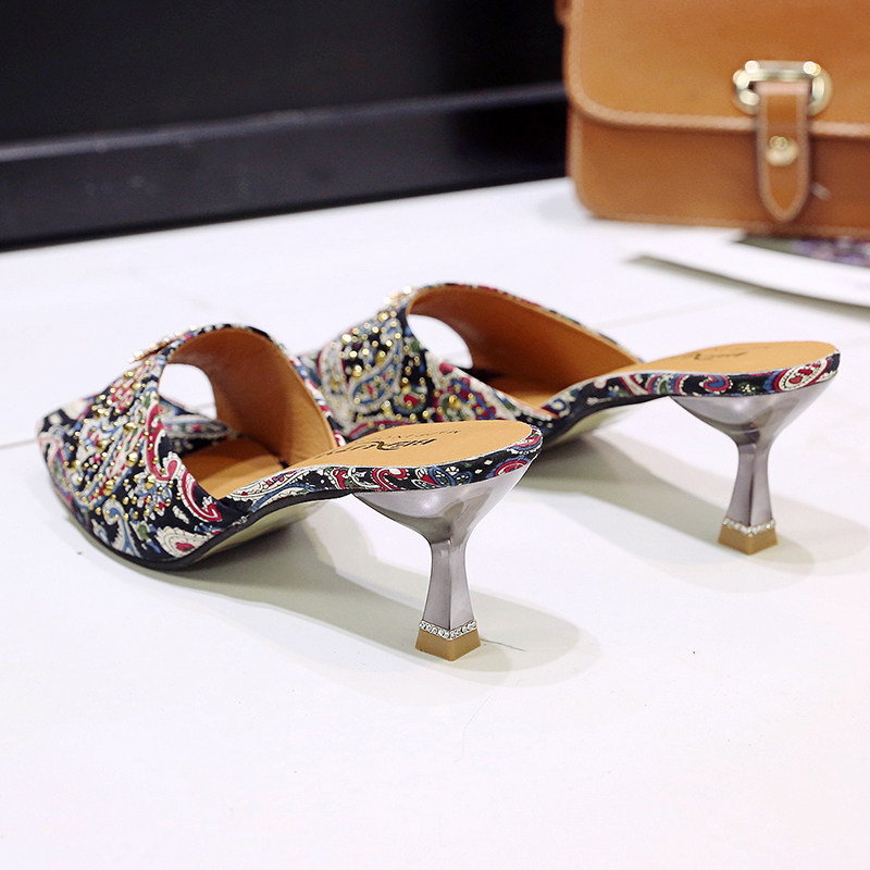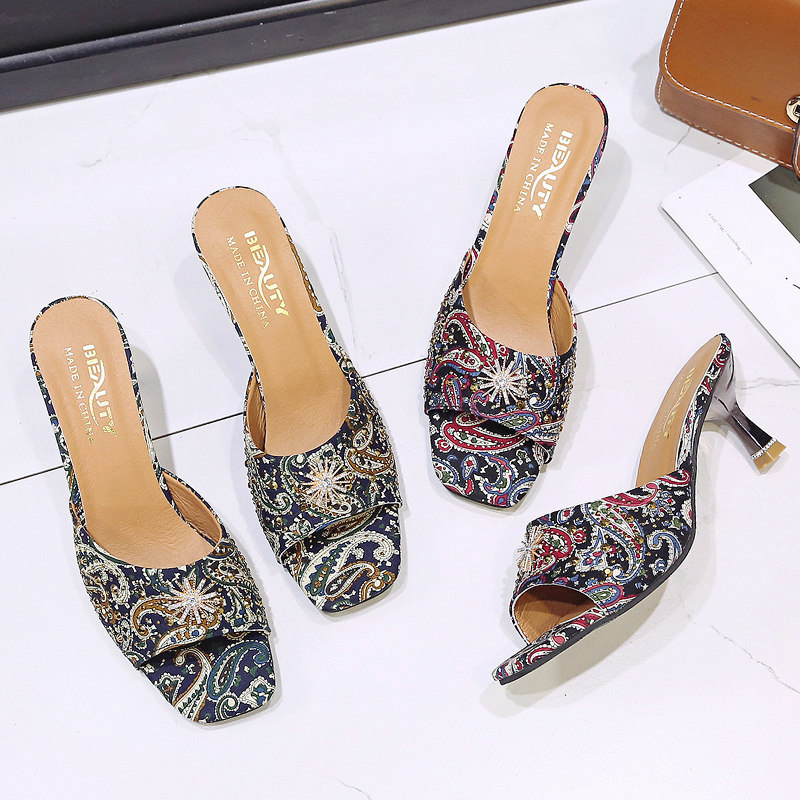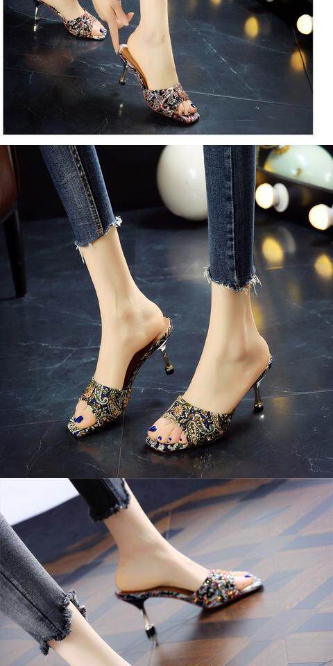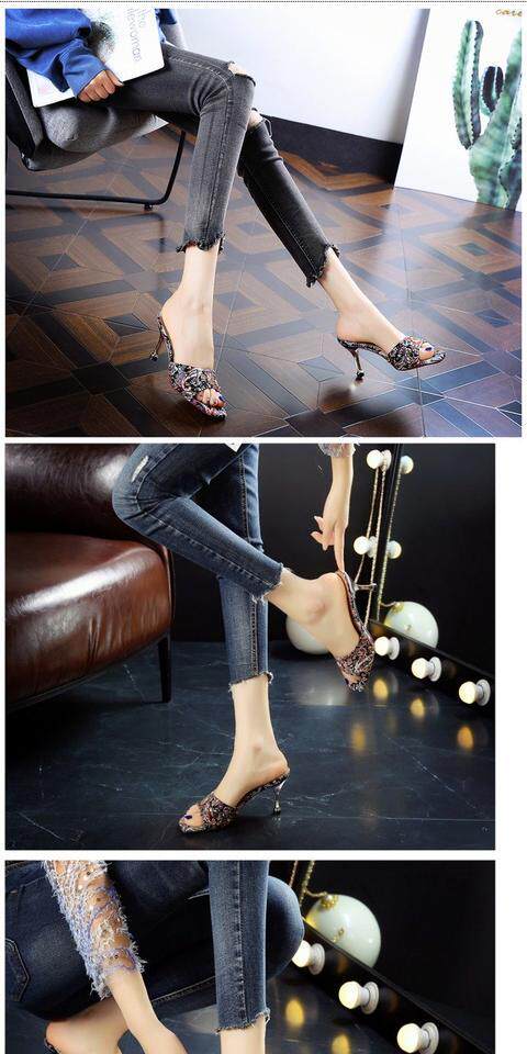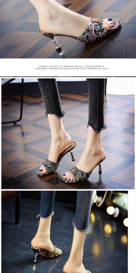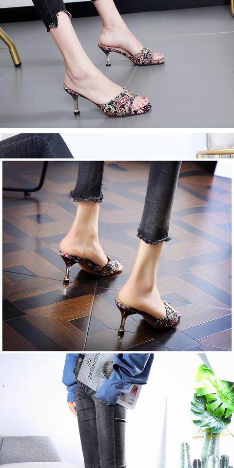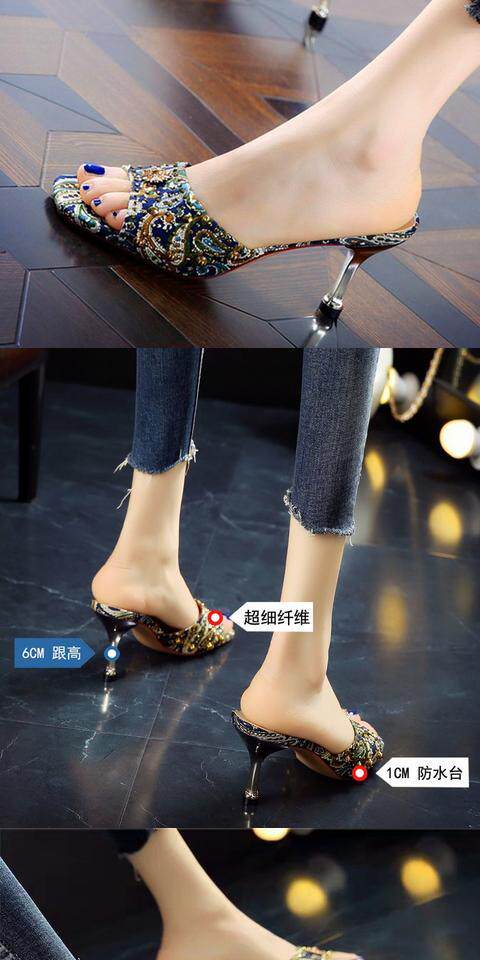 Тапки Женские сандалии 2022 лето новая коллекция сеть красный Полутрещитный на высоком каблуке Носить популярный Сотни тонкой женской обуви