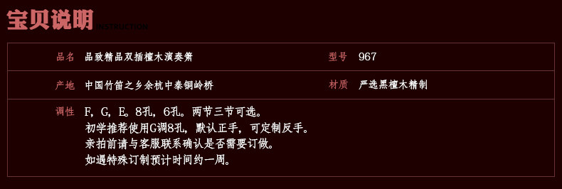 Музыкальный инструмент из сандалового дерева Dongxiao Профессиональное исполнение Три секции Две секции EFG Tuning Port / Шесть или восемь отверстий Обработка длинных и коротких отверстий сандалового дерева Xiaoxiao