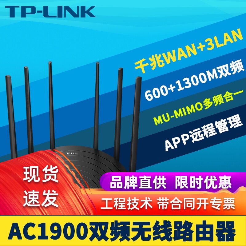 TP-Link AC1900 Пары частота без Линия маршрутизатора полностью Gigabit 4 сетевой порт домашний волокно широкополосный высокая Скорость 5G стена Wi-Fi корпус Приложение Удаленное управление поведением поведения Ограничение пропускной способности