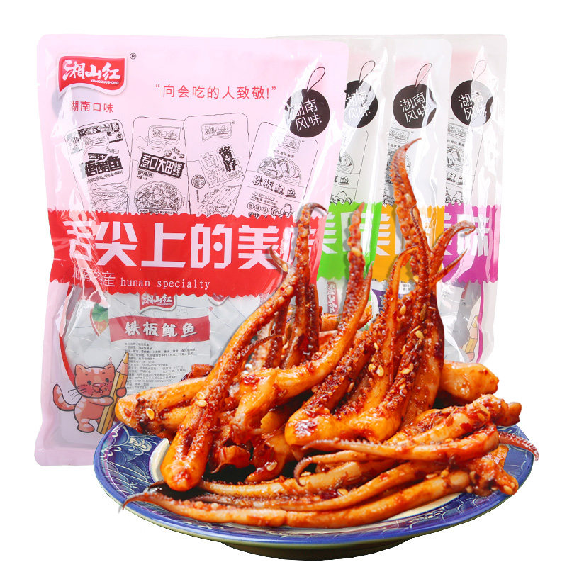 Сянцшань красный железо панель Кальмар, еда, закуска, подарок пакет Острые руки слезы Squid Silk пряные закуски смешаны