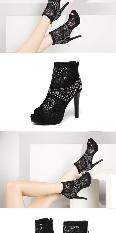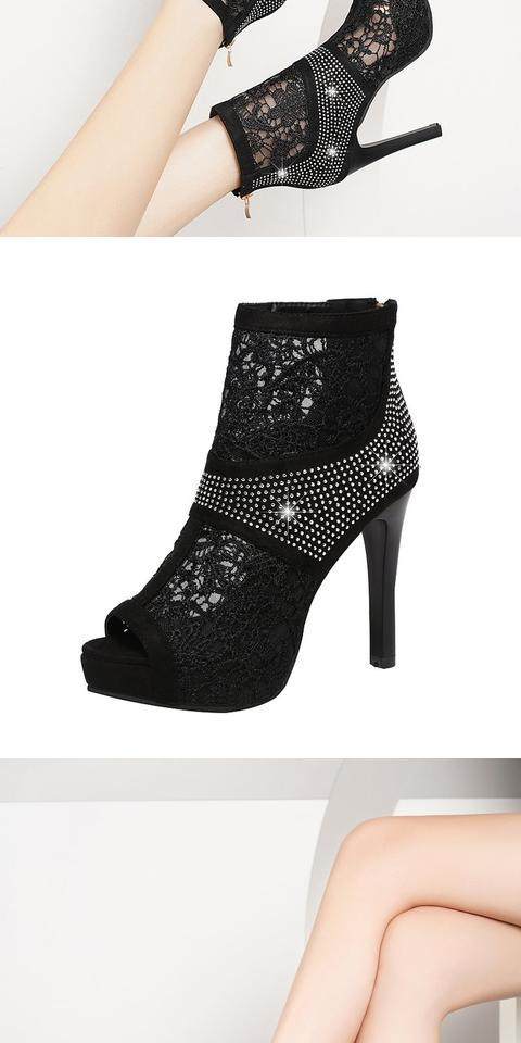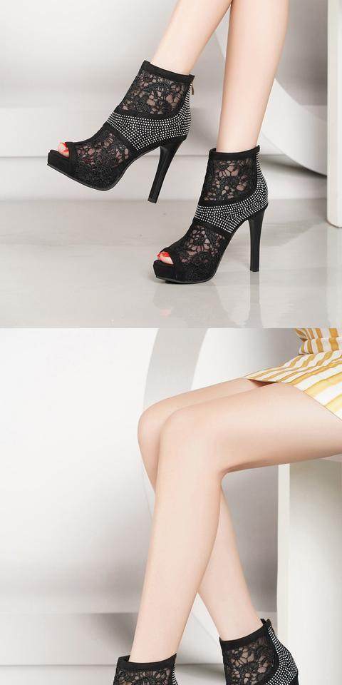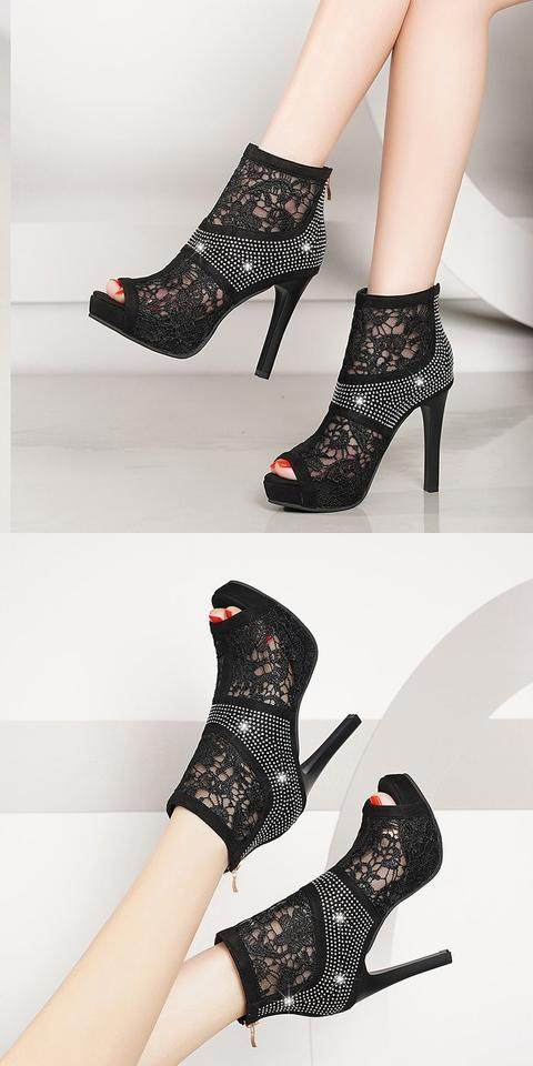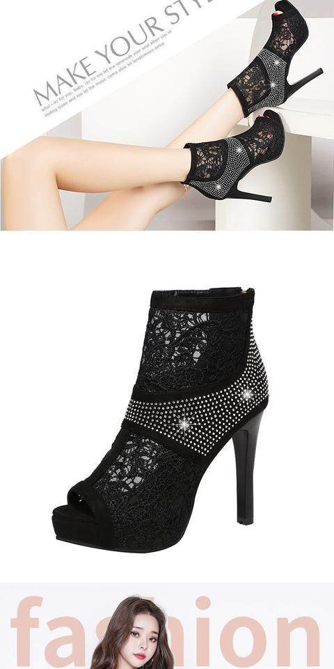 Прохладные ботинки на высоком каблуке Обувь 2022 Лето новая коллекция корейская версия Сетчатые бурильные Сексуальные Сандалии Сексуальные Сандалии Отдельно носите Рыбную рта Обувь