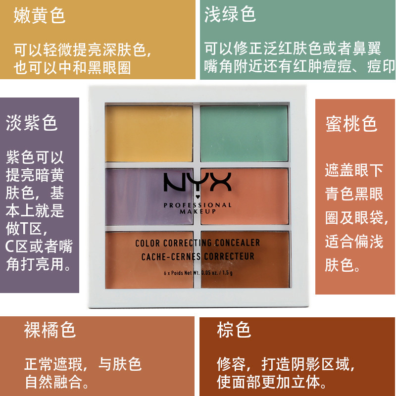 NYX 6-цветный 6-цветный крем-консилер 3CP04 высокая Легкий ремонт черный Стойкое тонирование от кругов вокруг глаз