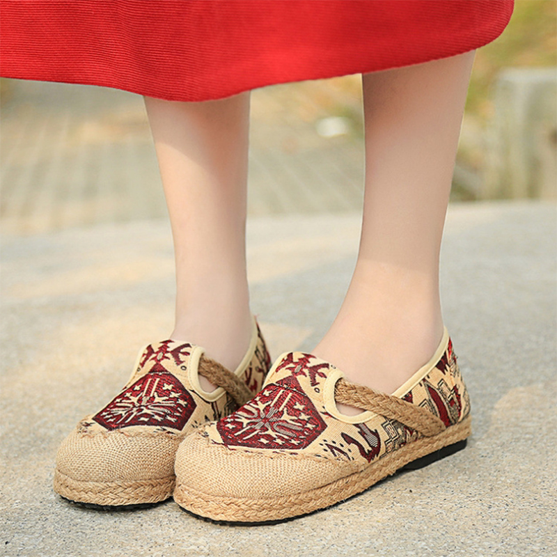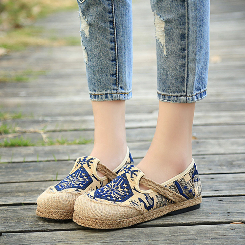 На улице новая коллекция винтаж хлопок онемевший для отдыха Обувь дикий этнический стиль женская обувь вышитая тканевая туфли женская обувь интерьер онемевший на плоской подошве туфли