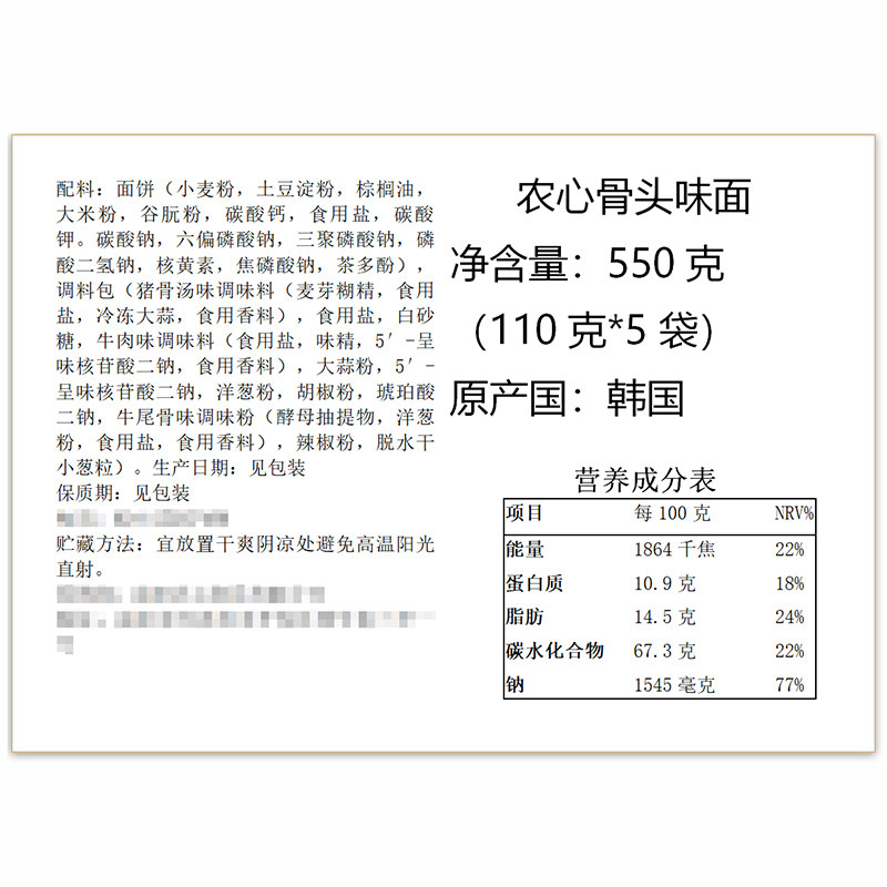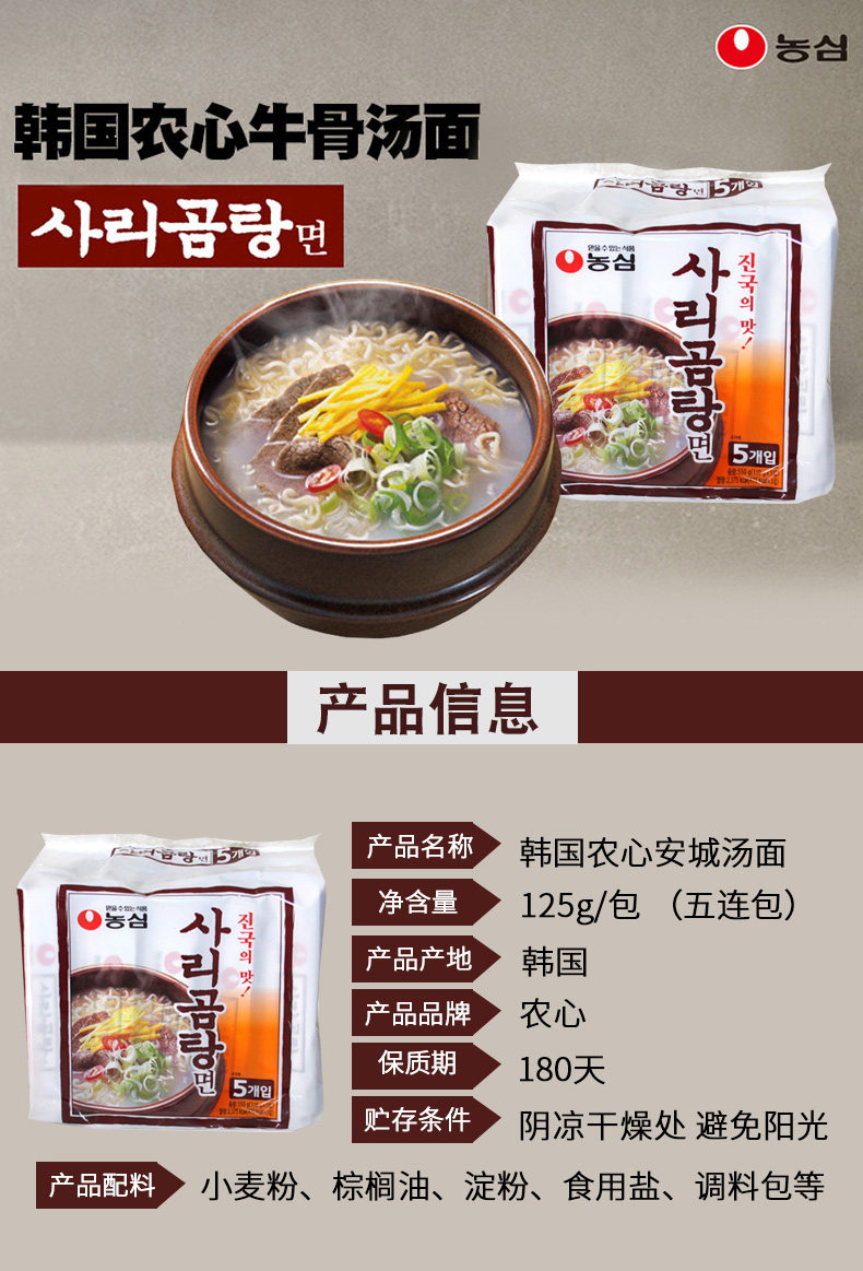 Корейский Imported Farmer's Bulls Noodle Суп 110G * 5 Сумки из говядины Костяная лапша Рамена Мгновенная лапша Быстрая пищевая поверхность