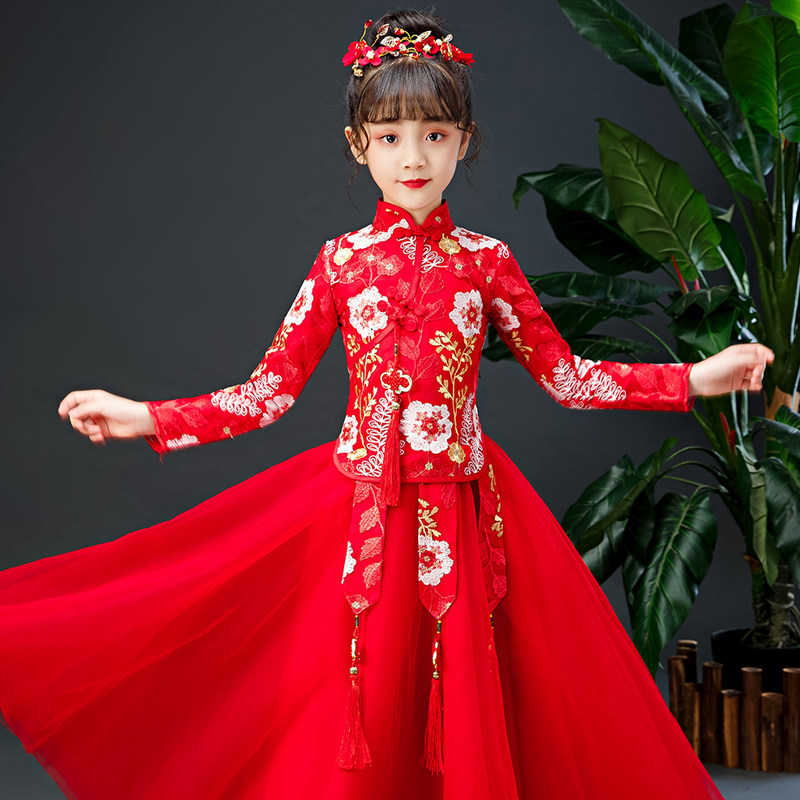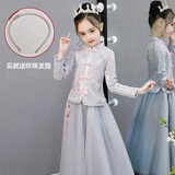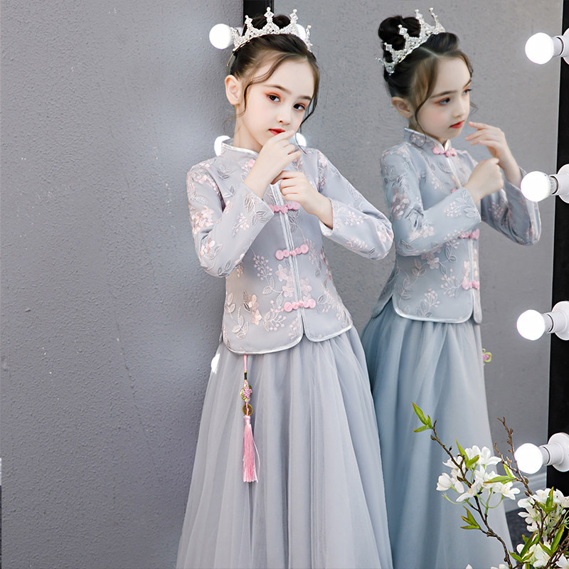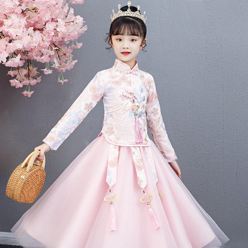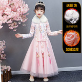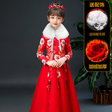 Китайский стиль детские Hanfu замшевый утепленный платье на девочку Костюмное платье Тан костюм для маленькой принцессы Новогоднее платье осень-зима