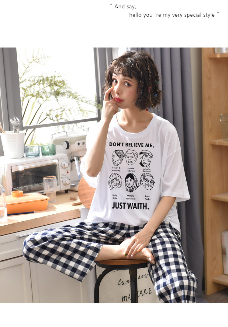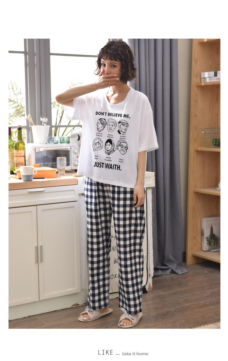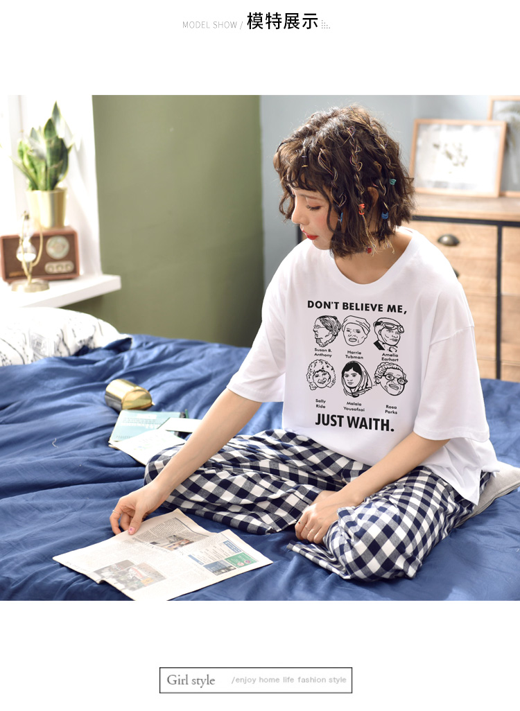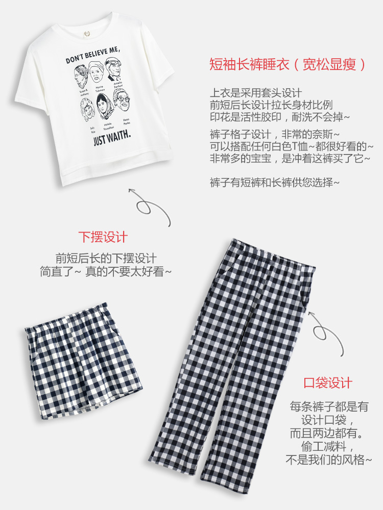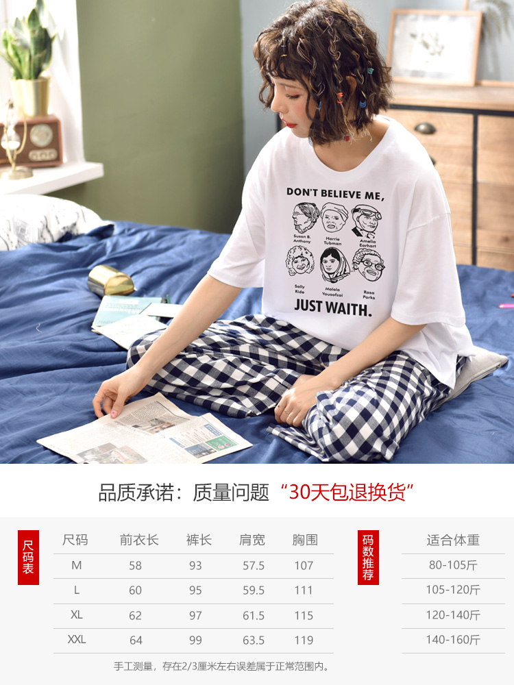 Летняя пижамас короткий рукав штаны чистый хлопок Тонкий стиль Студентки большой размер 200 кит.фунт Толстый мм домашний сервис два наборы Пакет