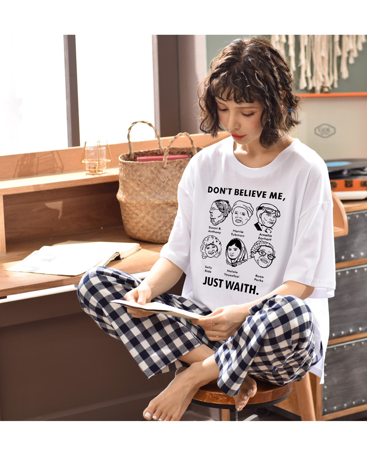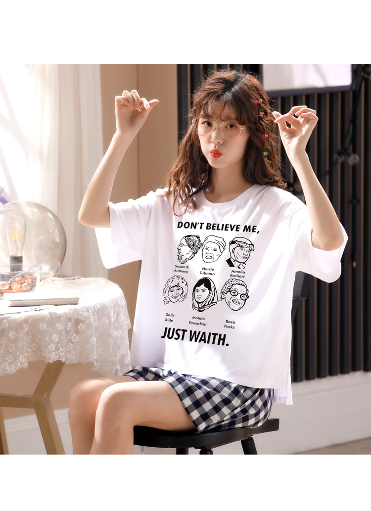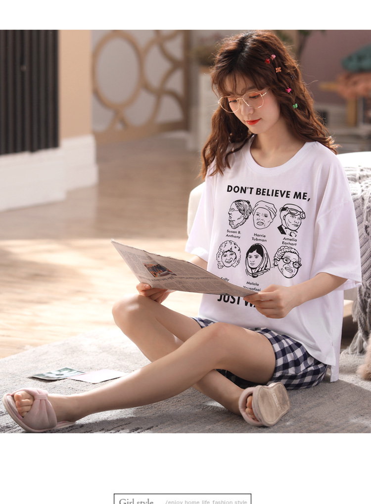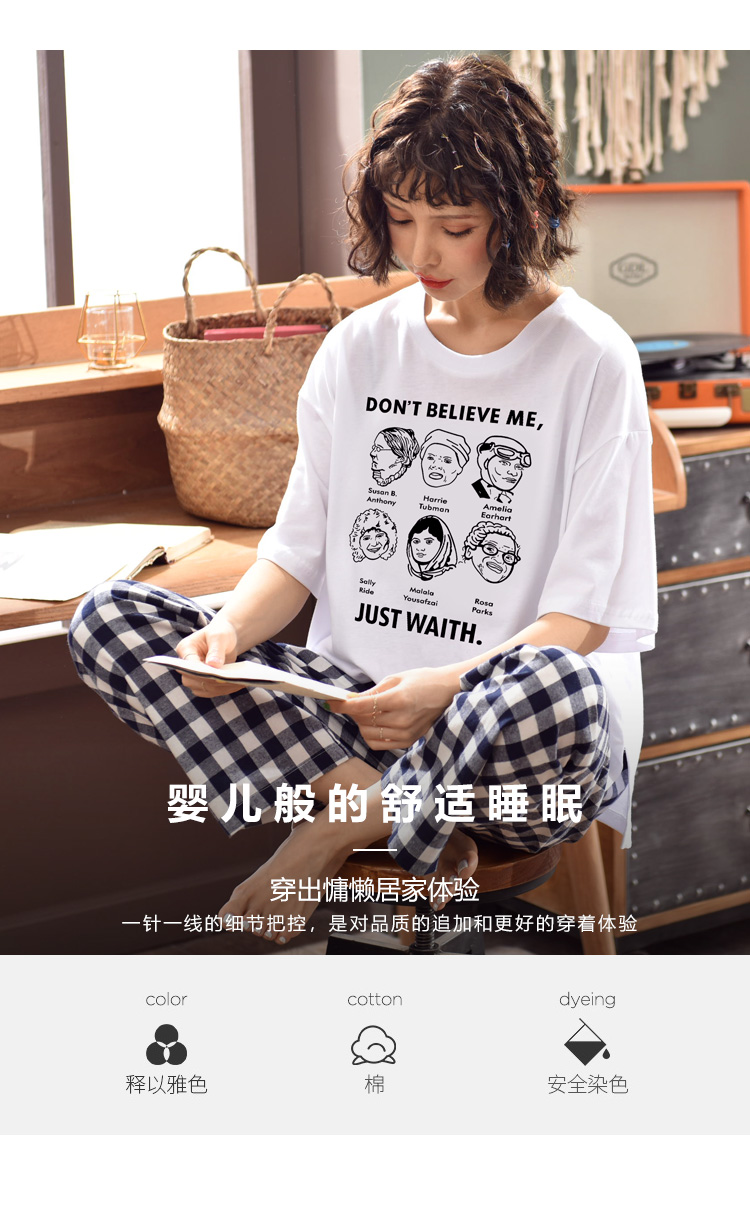 Летняя пижамас короткий рукав штаны чистый хлопок Тонкий стиль Студентки большой размер 200 кит.фунт Толстый мм домашний сервис два наборы Пакет